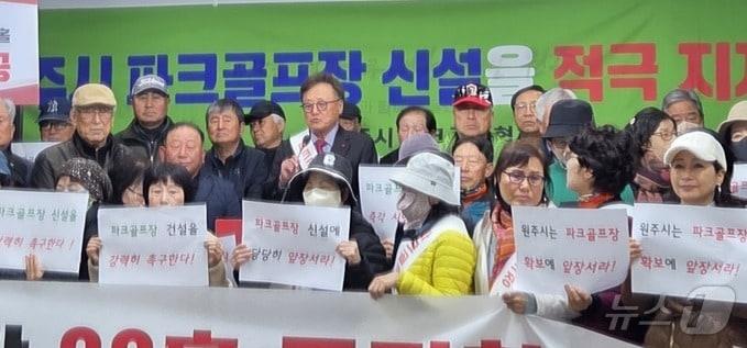 강원 원주시파크골프협회 회원들이 17일 원주시청에서 회견을 열고 시내 파크골프장 확충을 촉구하는 입장을 밝히고 있다. (독자제공. 재판매 및 DB금지) 2025.3.17/뉴스1관련 키워드원주시파크골프시설확충회견신관호 기자 "신천지 문제로 갈등" 아내 살해 60대에 징역 15년 구형정선군, 지방선거 대비 공직선거법 교육관련 기사원주 옛 드림랜드 방치 해결되나…골프장 이어 영화 촬영 제안원주 파크골프協 "시내 4곳에 총 90홀 파크골프장 신설 필요"김완섭 환경장관, 원주 섬강파크골프장 조성 현장 방문원주시, 전국 1등 체육도시 목표…대규모 시설확충 계획