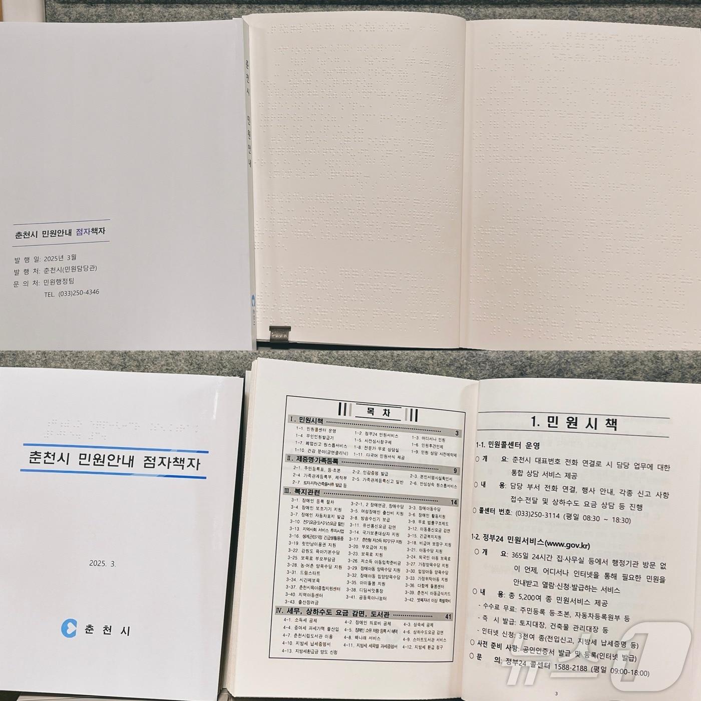 시청 1층 민원대기실, 각 읍·면·동 행정복지센터 비치춘천시, 민원 업무 안내 점자 책자 4차 개정판.(춘천시 제공, 재판매 및 DB금지)관련 키워드춘천한귀섭 기자 강원교육청, 교육감입학전형 고등학교 신입생 5487명 23개교 추첨 배정강릉·동해·삼척·강원중부산지·남부산지 강풍주의보 발효관련 기사강릉원주대, 중앙아시아 교육기관 초청 연수…유학생 유치 시동강원교육청, 교육감입학전형 고등학교 신입생 5487명 23개교 추첨 배정KGM 전국 130개 대리점 간담회…판매 우수점 시상춘천시, 16일부터 '땡겨요' 배달비 3000원 지원…예산 소진 시까지중부지방 중심 전국 곳곳 눈·비…빙판길·도로 살얼음 '주의'(종합)