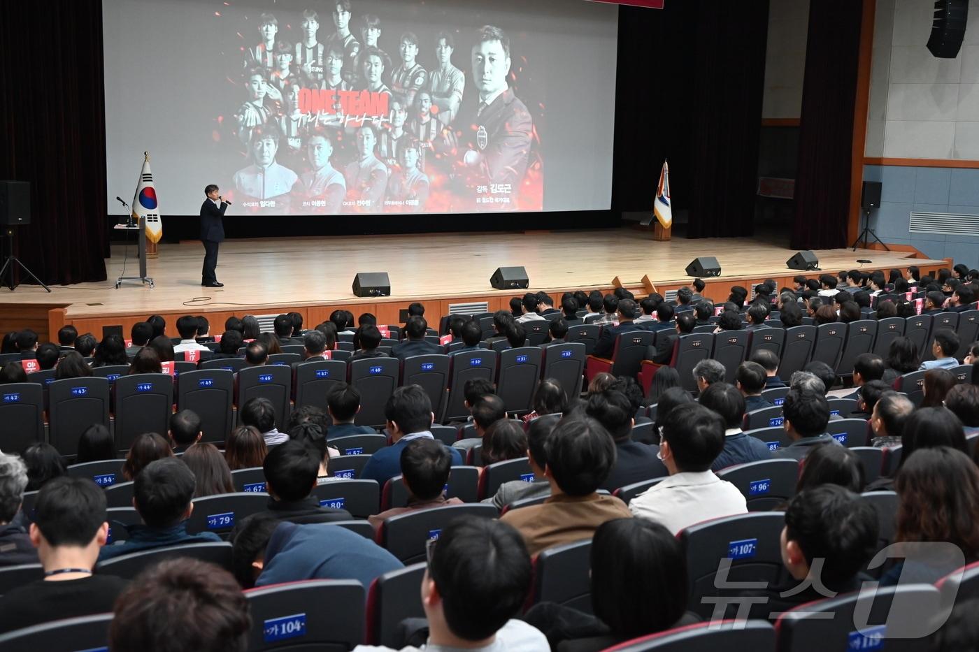 1일 강원 강릉시 대강당에서 열린 4월 월례조회에 앞서 실시된 강릉시민축구단 홍보전.(강릉시 제공, 재판매 및 DB 금지) 2025.4.1/뉴스1관련 키워드강릉시밈축구단강릉시윤왕근 기자 양양군의회, 전국 기초의회 첫 'AI 의정 보좌관' 도입강릉시, 야간 돌봄 공백 메운다…자정까지 '연장돌봄' 시행