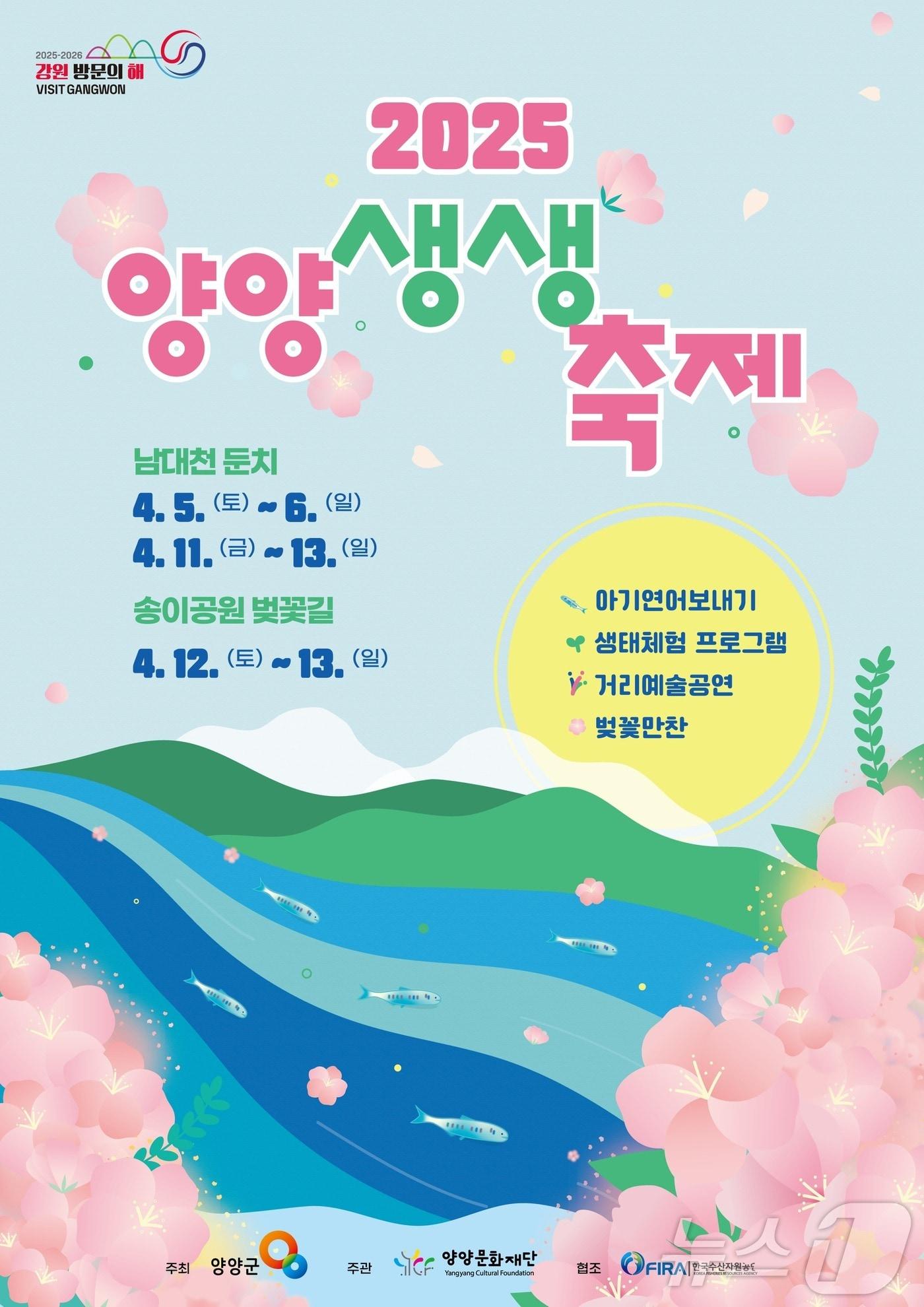 대규모 개막쇼 취소…메인 행사 '아기연어 보내기' 예정대로양양생생축제 홍보물.(양양군 제공, 재판매 및 DB 금지) 2025.4.2/뉴스1관련 키워드양양군양양생생축제아기연어보내기윤왕근 기자 양양군의회, 전국 기초의회 첫 'AI 의정 보좌관' 도입강릉시, 야간 돌봄 공백 메운다…자정까지 '연장돌봄' 시행