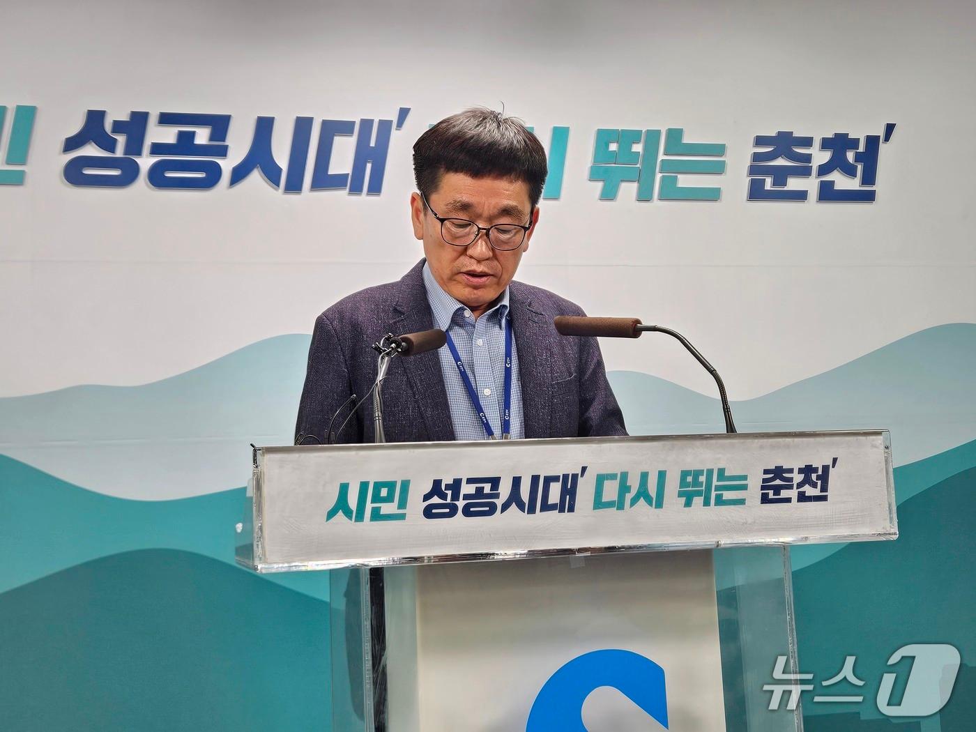 춘천시 "강원지사 구단주로 중재와 조정 나설 것 요청"공무원노조 춘천시지부도, 공직자 폄훼 사과 촉구정운호 춘천시 기획행정국장은 18일 시청 브리핑룸에서 기자회견을 갖고 전날 김병지 대표의 발언에 대한 사과를 요구하고 있다.2025.4.18 한귀섭 기자춘천시청.(뉴스1 DB)관련 키워드춘천시청강원FC한귀섭 기자 강원경찰청, '휴대용 열화상 카메라' 등 맞춤형 장비 9종 도입신축 공사·전원주택 분양 미끼로 20억 원 가로챈 50대 재판행관련 기사다음주 춘천서 강원FC ACL 첫 경기…시·사무국 막판 준비 분주'ACL 홈경기 개최 이상 무' 춘천시, 준비상황 점검강원FC, 춘천시와 결별…내년 강릉서 모든 홈경기 진행(종합)춘천시 강원FC 홈경기 경쟁입찰 미신청…재공모 참여 가능성은춘천시, 강원FC 내년 홈경기 경쟁입찰 참여 안 할 듯