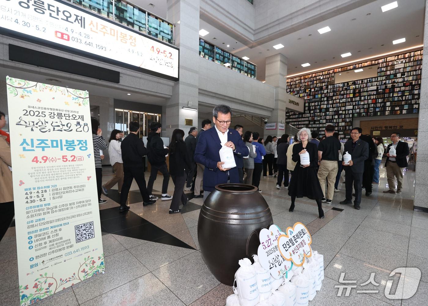 김홍규 강릉시장이 22일 시청에서 열린 강릉단오제 신주미 봉정 행사에 참여하고 있다.(강릉시 제공, 재판매 및 DB 금지) 2025.4.22/뉴스1김홍규 강릉시장(사진 가운데)과 시청 직원들이 22일 시청에서 열린 강릉단오제 신주미 봉정 행사에 참여한 뒤 기념촬영을 하고있다.(강릉시 제공, 재판매 및 DB 금지) 2025.4.22/뉴스1관련 키워드강릉단오제신주미김홍규윤왕근 기자 양양군의회, 전국 기초의회 첫 'AI 의정 보좌관' 도입강릉시, 야간 돌봄 공백 메운다…자정까지 '연장돌봄' 시행관련 기사'스무살, 단오'…신주미 봉정·신주 빚기로 강릉단오제 서막해마다 4월 되면 쌀 모으는 강릉시민…'단오 신주미' 뭐길래