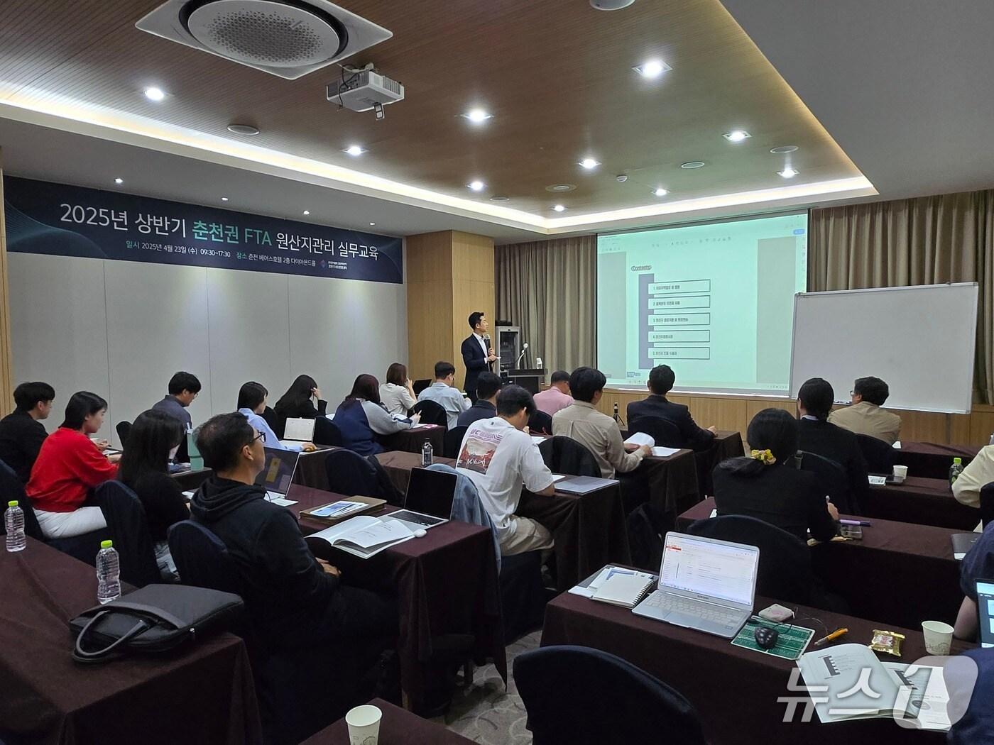 23일 춘천베어스호텔서 올해 상반기 춘천권 교육강원FTA통상진흥센터가 23일 강원 춘천베어스호텔에서 '2025년도 상반기 춘천권 자유무역협정(FTA) 원산지관리 실무교육'을 진행하고 있다. (한국무역협회 강원지역본부 제공) 2025.4.23/뉴스1관련 키워드한국무역협회강원지역본부춘천베어스호텔FTA원산지실무교육신관호 기자 "석탄공사 부채를 강원랜드가 갚으라고?"…지역사회 반발"신천지 문제로 갈등" 아내 살해 60대에 징역 15년 구형