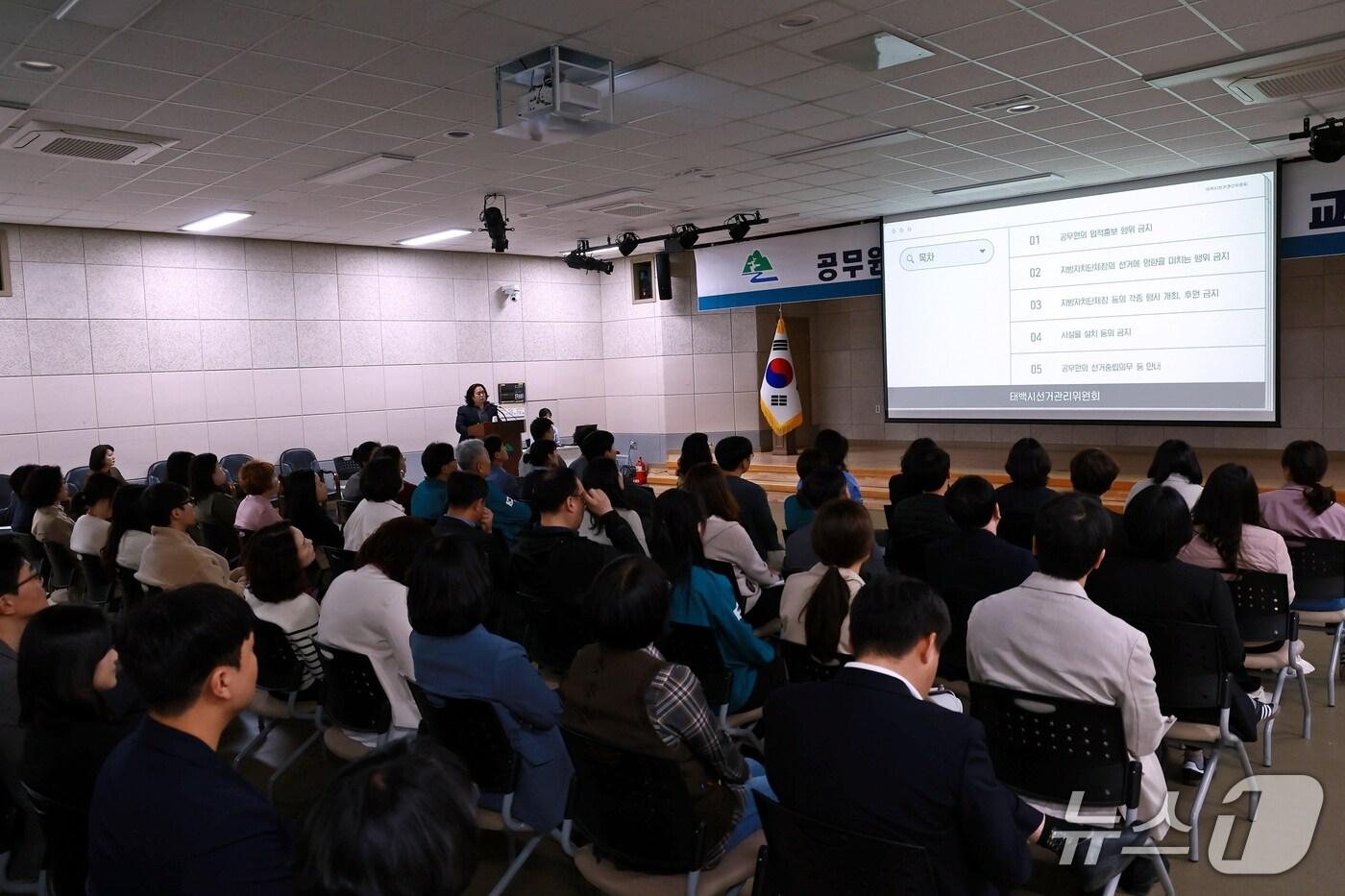 강원 태백시가 지난 23일 시청 대회의실에서 제21대 대통령 선거와 관려해 전 직원 대상 공직선거법 교육에 나섰다. (태백시 제공. 재판매 및 DB금지) 2025.4.24/뉴스1관련 키워드태백시공직선거법교육대선조기대선2025대선신관호 기자 "석탄공사 부채를 강원랜드가 갚으라고?"…지역사회 반발"신천지 문제로 갈등" 아내 살해 60대에 징역 15년 구형관련 기사22대 국회의원 출마 후보자 비정규학력으로 선거운동…2심도 벌금형