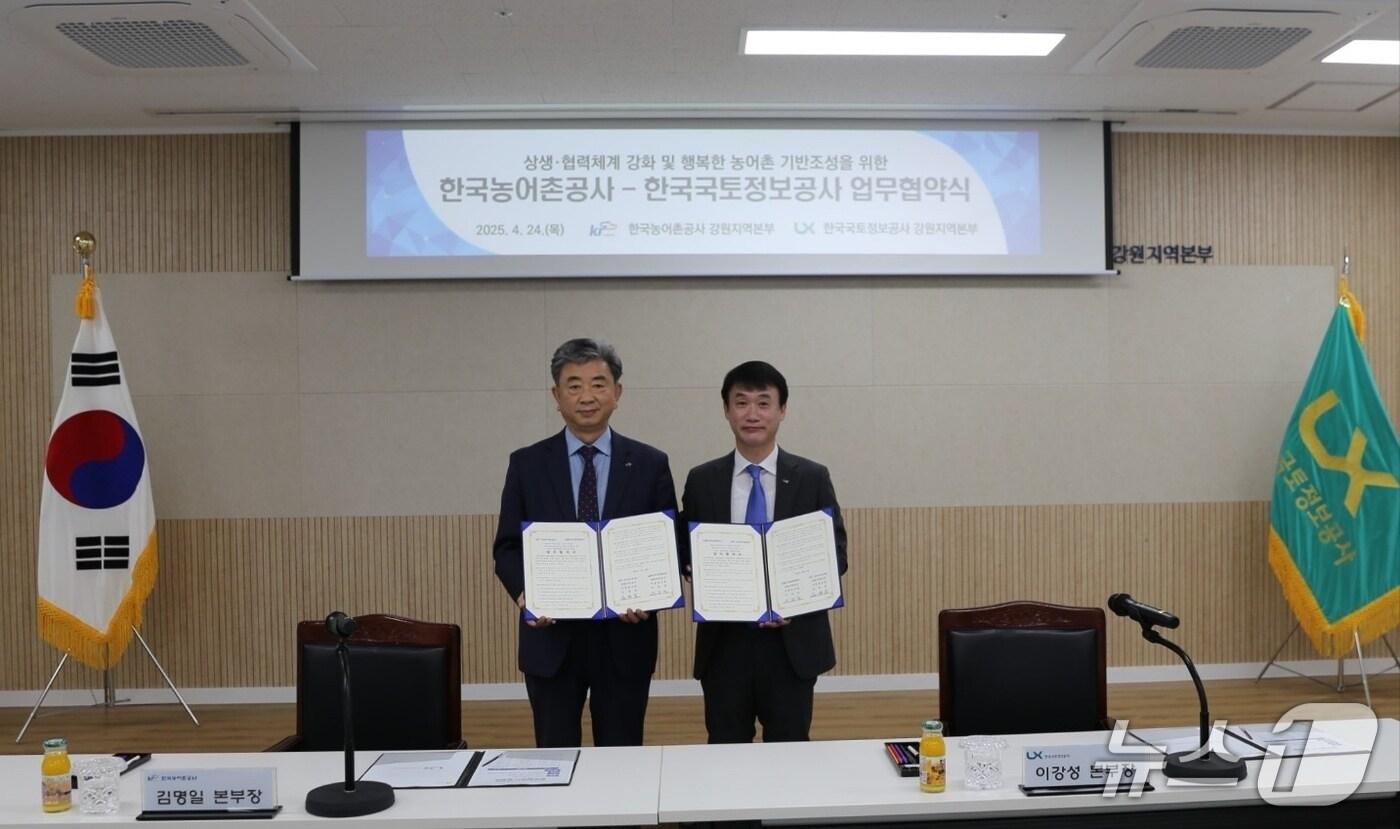 김명일 한국농어촌공사 강원지역본부장과 이강성 한국국토정보공사 강원지역본부장이 LX 강원본부에서 업무협약을 체결한 뒤 기념촬영을 진행했다.( 한국농어촌공사 강원본부 제공, 재판매 및 DB금지)관련 키워드강원한귀섭 기자 원주 가현동 하천서 70대 실종 하루 만에 숨진 채 발견영월서 그랜저·쏘렌토 충돌…1명 사망·5명 중경상관련 기사미세먼지 토요일 낮부터 해소…동쪽 '건조'·곳곳 '블랙아이스'(종합)원주 가현동 하천서 70대 실종 하루 만에 숨진 채 발견영월서 그랜저·쏘렌토 충돌…1명 사망·5명 중경상'CES 2026' 참가한 원주 기업들 191만여 달러 계약 성과원주시 올해도 공영주차장 지속 확충…53억 들여 1042면 조성