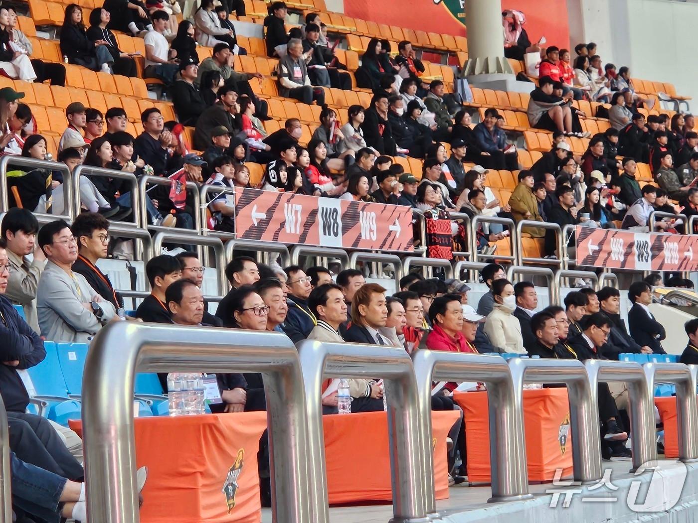 경기 전 만나 현수막 철거 문제 등 최근 현안 대화육동한 춘천시장 "오늘 강원FC 홈경기 불참"…"김병지 사과해야"11일 오후 강원FC와 김천상무의 프로축구 K리그1 경기가 열리는 춘천 송암스포타운 주경기장 VIP석에 김진태 강원도지사, 김병지 강원FC 대표 이사 등이 경기를 관람하고 있다.2025.5.11 한귀섭 기자관련 키워드강원춘천김병지축구한귀섭 기자 춘천 신북 재활용도움센터 3주간 시범운영…1.8톤 수거 성과강원도, 해넘이·해맞이 행사 안전관리 점검 만전윤왕근 기자 "속초 '72정' 인양 2027년 착수 가능할듯"…실종자 가족 "희망 생겼다""강릉~부산 3시간 50분 시대 열렸다"…동해선 KTX 투입 첫날 표정관련 기사강원FC 나르샤 "많은 걸 느낀 1박2일, 끝까지 함께 싸워 나갈 것"강원FC, 상하이 선화와 ACL 첫경기…경기장은 비에도 팬들로 '북적'다음주 춘천서 강원FC ACL 첫 경기…시·사무국 막판 준비 분주"잔류 경쟁도 벅찬데"…'연고지 잡음'·'ACLE 변수' 어수선한 강원FC강원FC, 춘천 사무국도 이전 하나…내년 모든 경기 강릉에서