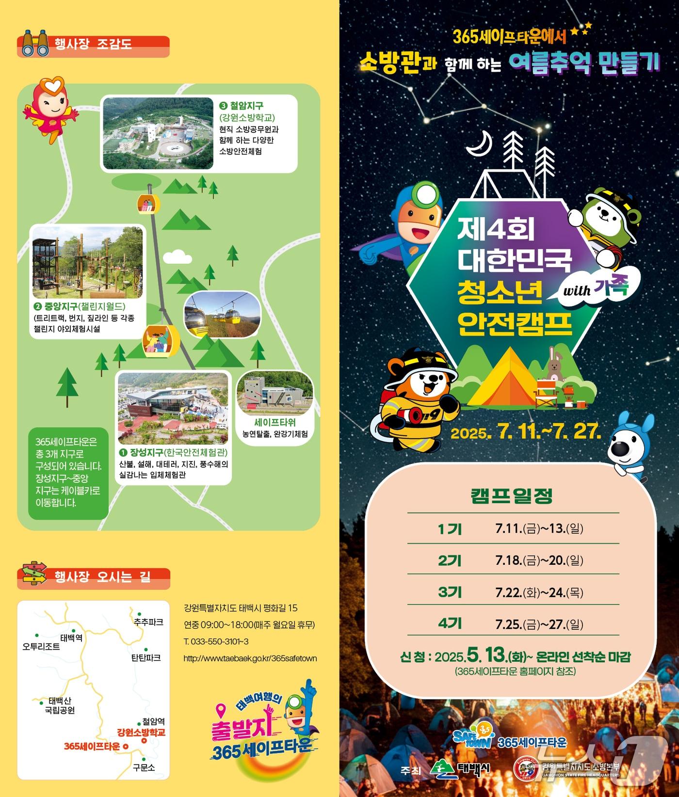 한국안전체험관·강원소방학교서 2박3일참가자 모집 13일부터 선착순 1000명제4회 대한민국 청소년 안전캠프 리플릿. (태백시 제공. 재판매 및 DB금지) 2025.5.12/뉴스1관련 키워드대한민국청소년안전캠프태백시강원특별자치도소방본부신관호 기자 "2만 원 안주면 찌른다"…횡성서 흉기 들고 캠핑카 찾아간 50대[오늘의 날씨] 강원(28일, 일)…영서·산간 최고 8㎝ 눈이나 5㎜ 비관련 기사전북도의회, 한·중·일 지방의회 원탁회의서 협력 비전 제시태백시, 23일까지 '청소년 안전캠프' 개막식 시민합창단 모집[화보] 사진으로 본 전남교육 이모저모남원시, '청소년 안전캠프' 유치…지역경제 활성화 기대[신년사] 이권재 오산시장 “대한민국 중추도시로 만들 것”