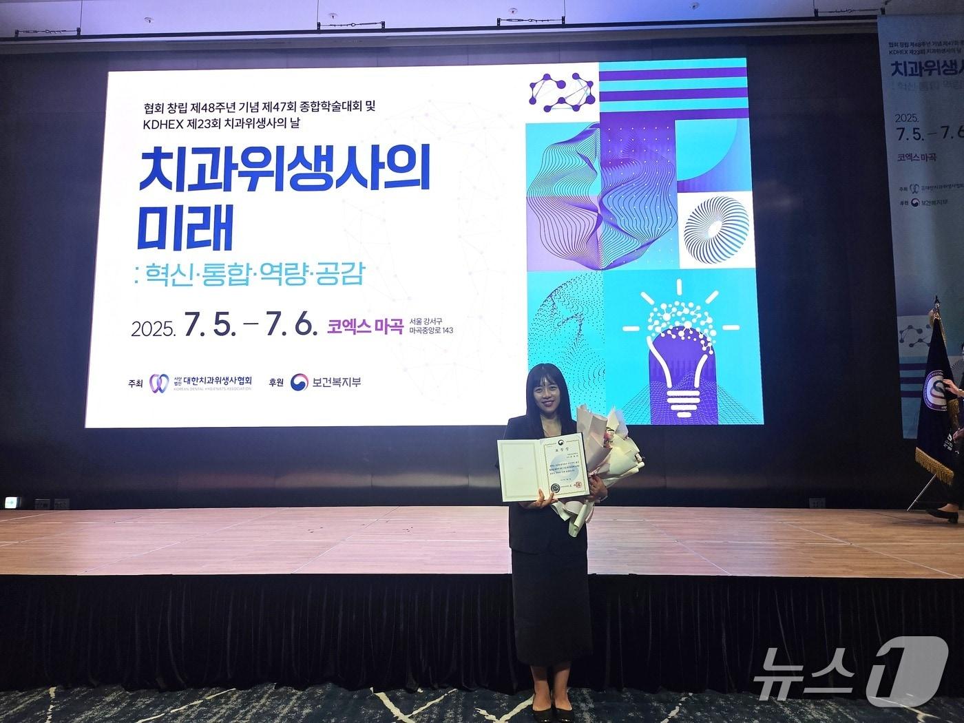 국민 구강 건강증진에 기여최유리 한림성심대학교 치위생과 교수가 최근 서울 코엑스 마곡에서 열린 (사)대한치과위생사협회 창립 제48주년 및 제23회 치과위생사의 날 행사에서 보건복지부 장관 표창장을 받았다.(한림성심대 제공. 재판매 및 DB금지)/뉴스1관련 키워드한림성심대최유리치위생사보건복지부장관표창이종재 기자 지인이 소개한 여성 성폭행 50대 '징역 8년'…과거 장애인 성폭행 전력[오늘의 날씨] 강원(26일, 금)…기온 뚝, 도 전역 강추위