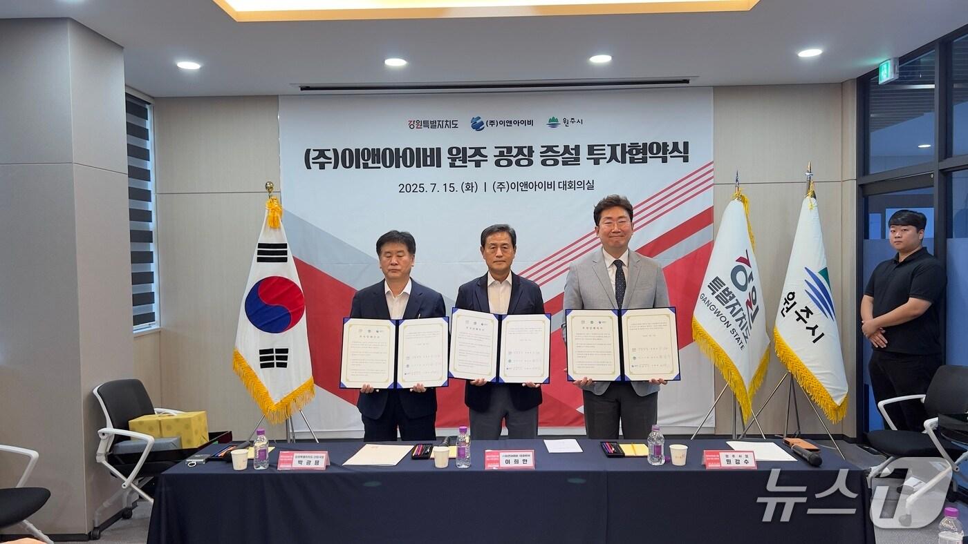 강원 원주 반도체부품기업 ㈜이앤아이비가 15일 자사 대회의실에서 강원특별자치도, 원주시와 함께 자사 제조시설 및 부설연구소 증설을 위한 투자협약을 체결했다. (원주시 제공. 재판매 및 DB금지) 2025.7.15/뉴스1