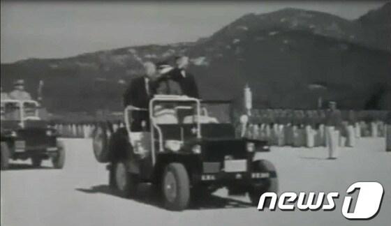 국가기록원 '대통령과 함께한 졸업식' 자료 공개이승만 전 대통령이 1955년 육군사관학교 제 1회 졸업식에 참석해 차를 타고 사열을 하고 있다.(사진=국가기록원 영상 캡처)© News1