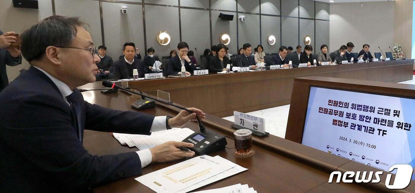6일 민원의 날 행사 개최해 포상 뒤 대책 공유고기동 행정안전부 차관이 세종시 정부세종청사에서 관계기관 국장급 및 지자체 민원부서장, 전문가들로 구성된 악성민원 대응 범부처 태스크포스(TF) 회의를주재하며 발언하고 있다. 2024.3.20/뉴스1 ⓒ News1 김기남 기자관련 키워드민원인민원의날이설 기자 [동정] 오세훈, 고위공직자 대상 청렴 교육 수강전국 집중호우로 대피 3555명 '미귀가'…도로·철도 곳곳 통제