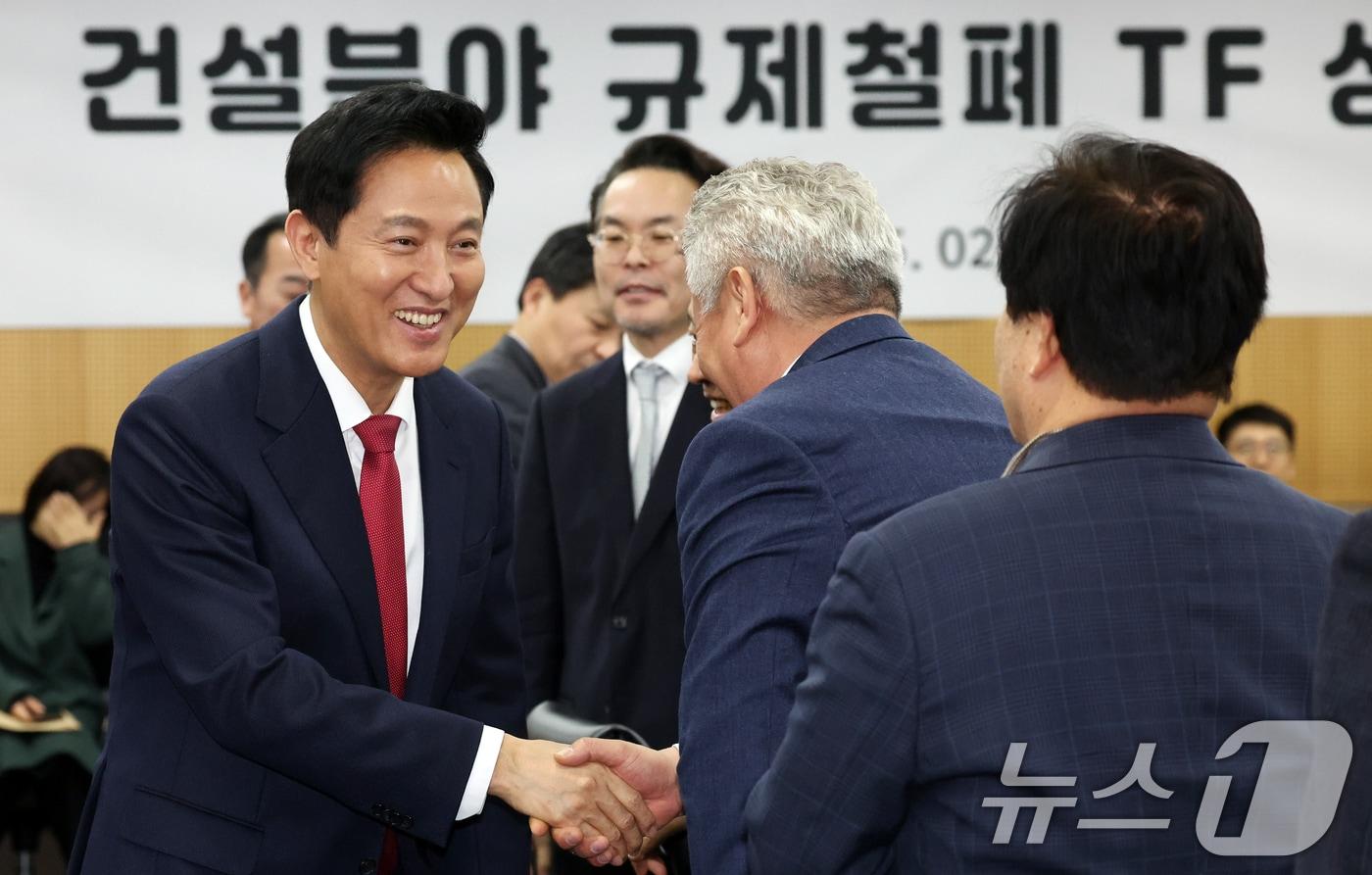공무원 제안 753건 중 시민‧전문가가 10건 선정오세훈 서울시장이 25일 서울시 중구 시청에서 열린 건설산업 규제철폐 TF 성과발표회에서 참석자들과 인사를 하고 있다. 2025.2.25/뉴스1 ⓒ News1 김명섭 기자관련 키워드서울시규제철폐오세훈한지명 기자 금천구, 발달장애인에 배상책임보험 지원…최대 3000만 원 보장성북구, 사회적경제기업에 0.75% 초저금리 융자…최대 4000만 원관련 기사"창의행정으로 세계 5대 도시 만든다"…서울시, 신년 직원조례[동정] 오세훈 서울시장, '2026년 도봉구 신년인사회' 참석오세훈 "대통령, 현장 민심 외면 말아야…재개발·재건축 속도전"오세훈 "집값 잡을 뾰족한 수 있다"…대통령 발언 유감·공급 시그널 강조오세훈, 가리봉2구역 재개발 방문…"규제에도 흔들림 없이 추진"