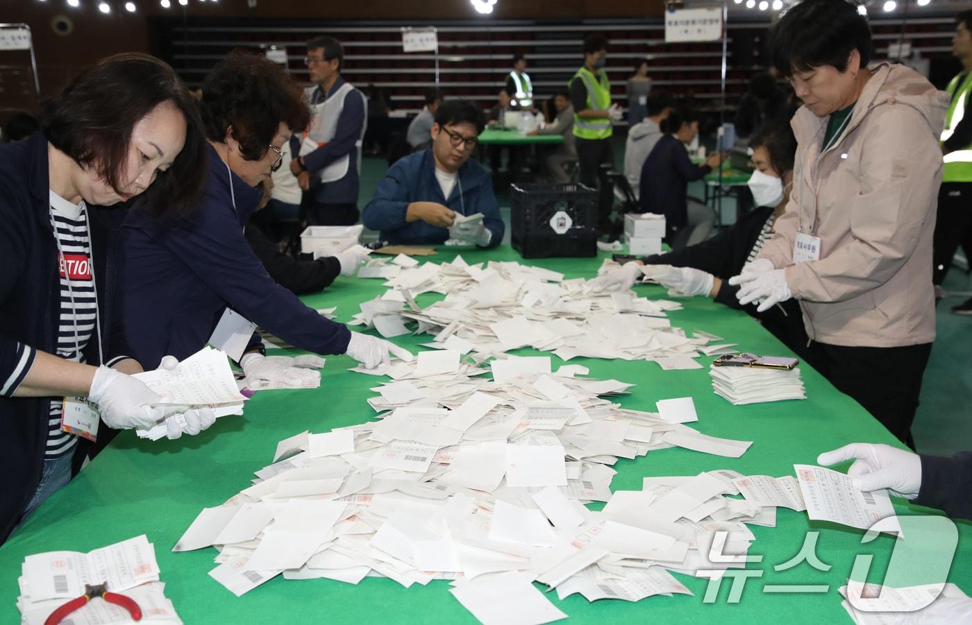 우편·인터넷 신고…투표소 방문 어려운 유권자 대상10·16 재보궐선거일인 16일 오후 부산 금정구 스포원파크 금정체육공원 실내체육관에 마련된 개표소에서 개표사무원들이 투표지 분류 작업을 하고 있다. 2024.10.16/뉴스1 ⓒ News1 윤일지 기자관련 키워드행정안전부거소투표재보궐선거한지명 기자 오세훈, 종합특검법 통과에 "특검중독 중증…종합 국기문란"[동정] 김민재 차관, 광주-전남 통합 논의…"적극 지원"관련 기사4·2 재보궐 선거인 수 462만 908명 확정