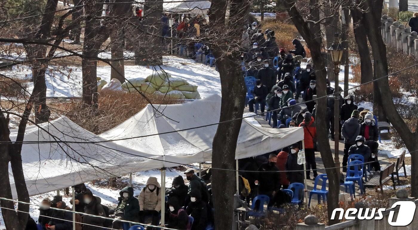 65세 이상 어르신 500명 모집설 연휴 마지막 날인 2일 서울시 종로구 탑골공원 원각사 무료 급식소에서 어르신들이 점심식사를 받기 위해 줄을 서고 있다. 2022.2.2/뉴스1 ⓒ News1 장수영 기자관련 키워드서울시밥퍼봉사단한지명 기자 학폭 가해자, 명문대 못 간다…서울 주요 대학서 99% 탈락 시켜오세훈, 종합특검법 통과에 "특검중독 중증…종합 국기문란"