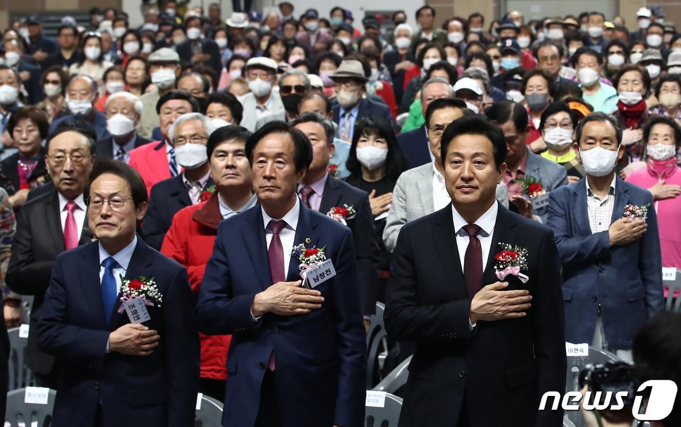 김경·윤영희 의원 모두 50억 원 이상 소유김혜영 의원 재산 19억 중 가상자산 17억오세훈 서울시장이 8일 서울 중구 장충체육관에서 열린 제51회 어버이날 기념식에서 국기에 경례를 하고 있다. 오른쪽부터 오 시장, 남창진서울시의회 부의장, 조희연 서울시 교육감. 2023.5.8/뉴스 ⓒ News1 김민지 기자관련 키워드서울시의원서울시의회재산공개남창진한지명 기자 서울시, 농업인 역량 향상 위해 '새해 실용교육' 운영무더위·한파 쉼터 개선 논의…"다양한 유형 쉼터 필요"이비슬 기자 서울 시내버스 극적 타결…'통상임금' 갈등 불씨 여전서울복지포털, 42개 메뉴에 수어영상 제공…청각장애인 접근성↑관련 기사최민호 세종시장 19억원 재산 신고…충청권 단체장 중 2위정근식 "사립학교 법정부담금 지원 정책, 전면 재점검 필요"