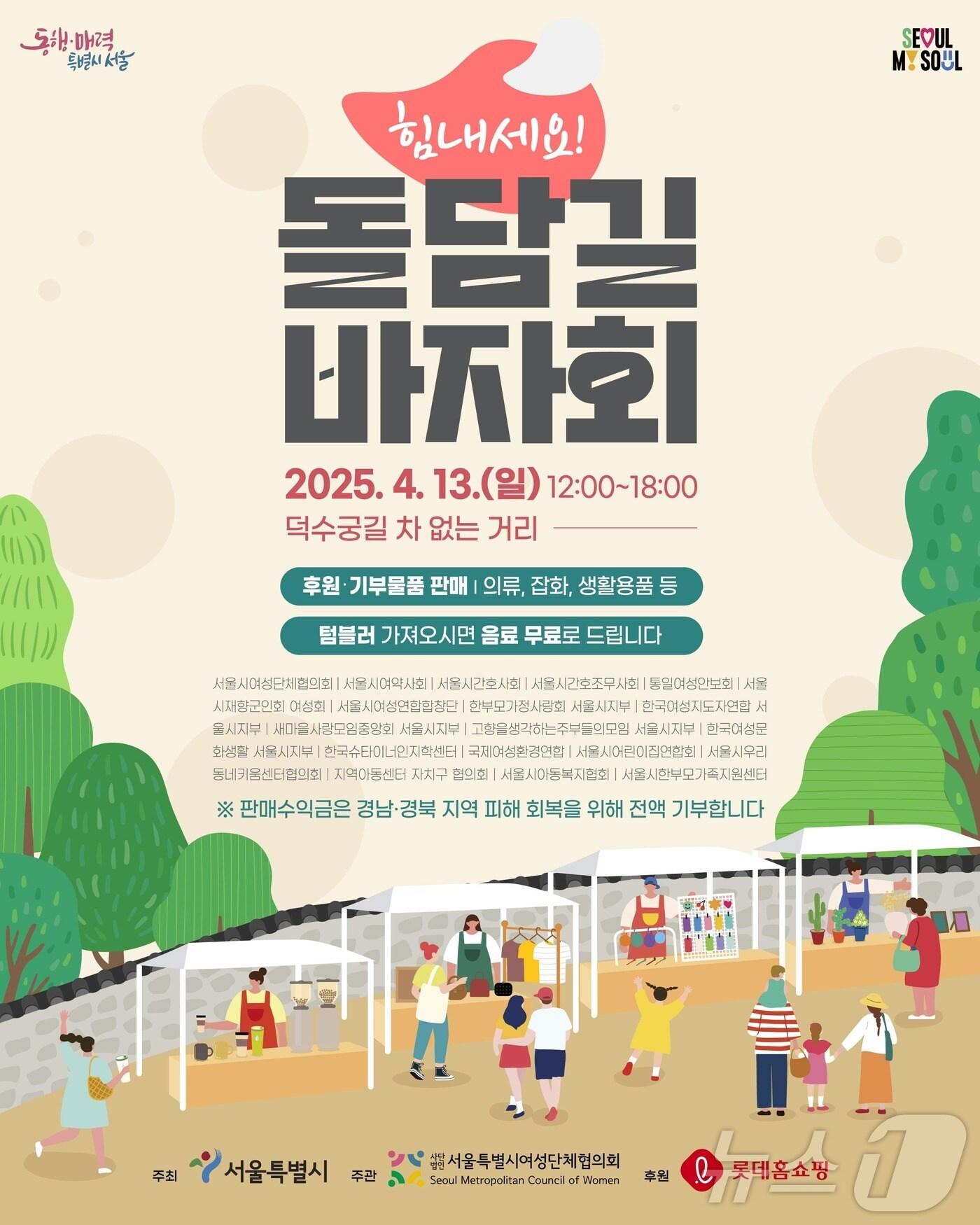 수익금 전액 경상권 복구 지원에 기부'힘내세요! 돌담길 바자회' 포스터.(서울시 제공)관련 키워드서울시산불바자회한지명 기자 서울시, 농업인 역량 향상 위해 '새해 실용교육' 운영무더위·한파 쉼터 개선 논의…"다양한 유형 쉼터 필요"관련 기사"한미 임직원이 나눈 3000시간의 온기"…열정 넘쳤던 '2025 CSR'정인성 원장, '반려동물 문화대상' 수상…"반려동물, 생명존중 가치 기준"서울시, 여성·아동단체와 '경북 산불피해' 복구에 4300만원 기부롯데홈쇼핑, 서울시와 산불 피해 이재민 돕기 바자회