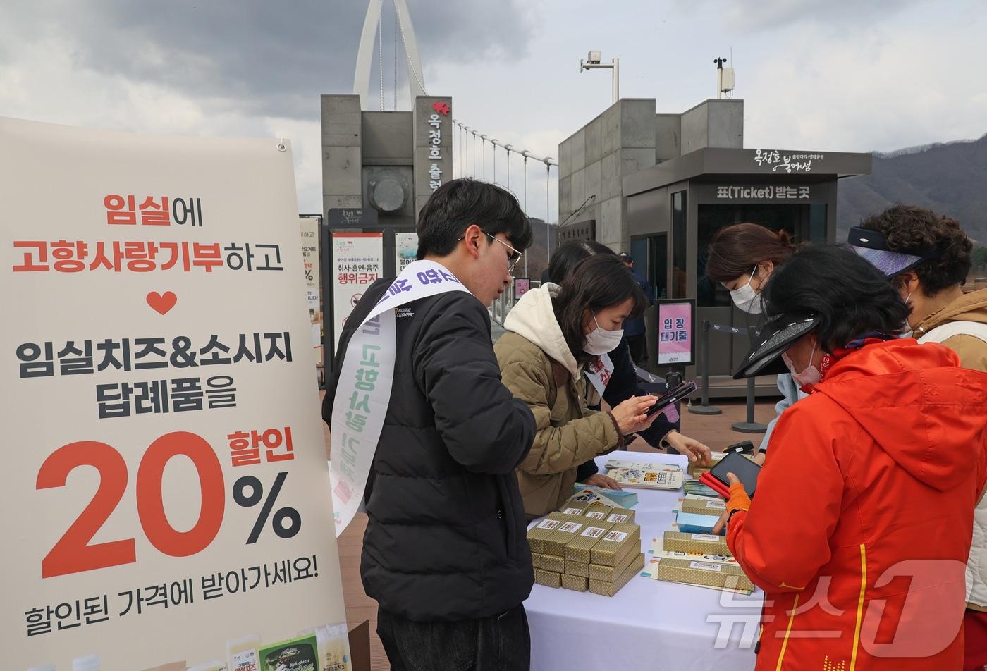 전북자치도 임실군 운암면 옥정호 출렁다리에 앞에서 군청 직원들이 관광객을 대상으로 고향사랑 기부제, 임실방문의 해, 임실엔티비 홍보를 하고 있다.(임실군제공. 재판매 및 DB금지) 2025.3.30/뉴스1 ⓒ News1 김동규 기자관련 키워드고향사랑기부제이비슬 기자 재수감 성범죄자 신상정보 공개기간 연장…법 개정 추진서울시, 2026 서울국제정원박람회 '작가정원' 5개 확정관련 기사김해시, 올해 달라지는 6대 분야 제도·시책 공개하동군, 고향사랑기부제 누적 모금액 23억원…경남 1위통영시, 고향사랑기부금 역대 최대 8억 6000만 원 모금정선군, 3년간 고향사랑기부 6억 돌파…답례품 확대"미국산 만다린 공포 마케팅에 흔들리면 안 돼…고품질로 승부"