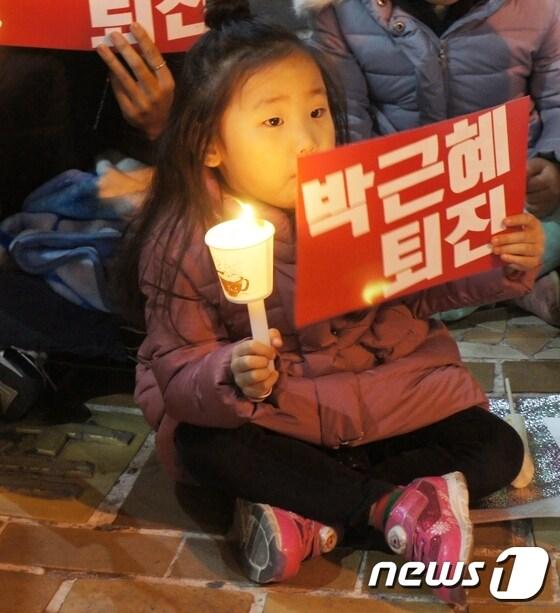 대학가, 시민단체에서 종교계로 확산 3일 오후 6시30분 충북 청주 성안길에서 열린 '국정농단 박근혜 퇴진 청주 시국 촛불 집회에서 한 어린이가 한 손에는 피켓을 , 다른 한 손에는 촛불을 들고 연설을 듣고 있다. ⓒ News1 / 남궁형진 기자3일 오후 6시30분 청주 성안길에서 열린 '국정농단 박근혜 퇴진 청주 시국 촛불 집회에는 여학생들의 모습도 눈에 띄었다. ⓒ News1 / 남궁형진 기자3일 청주 차 없는 거리입구에서 열린 청주 시국 촛불행동에 참가한 시민들이 박근혜 대통령의 퇴진이 쓰여있는 팻말을 들고 정권 퇴진을 외치고 있다. 2016.11.3/뉴스1 ⓒ News1 남궁형진 기자