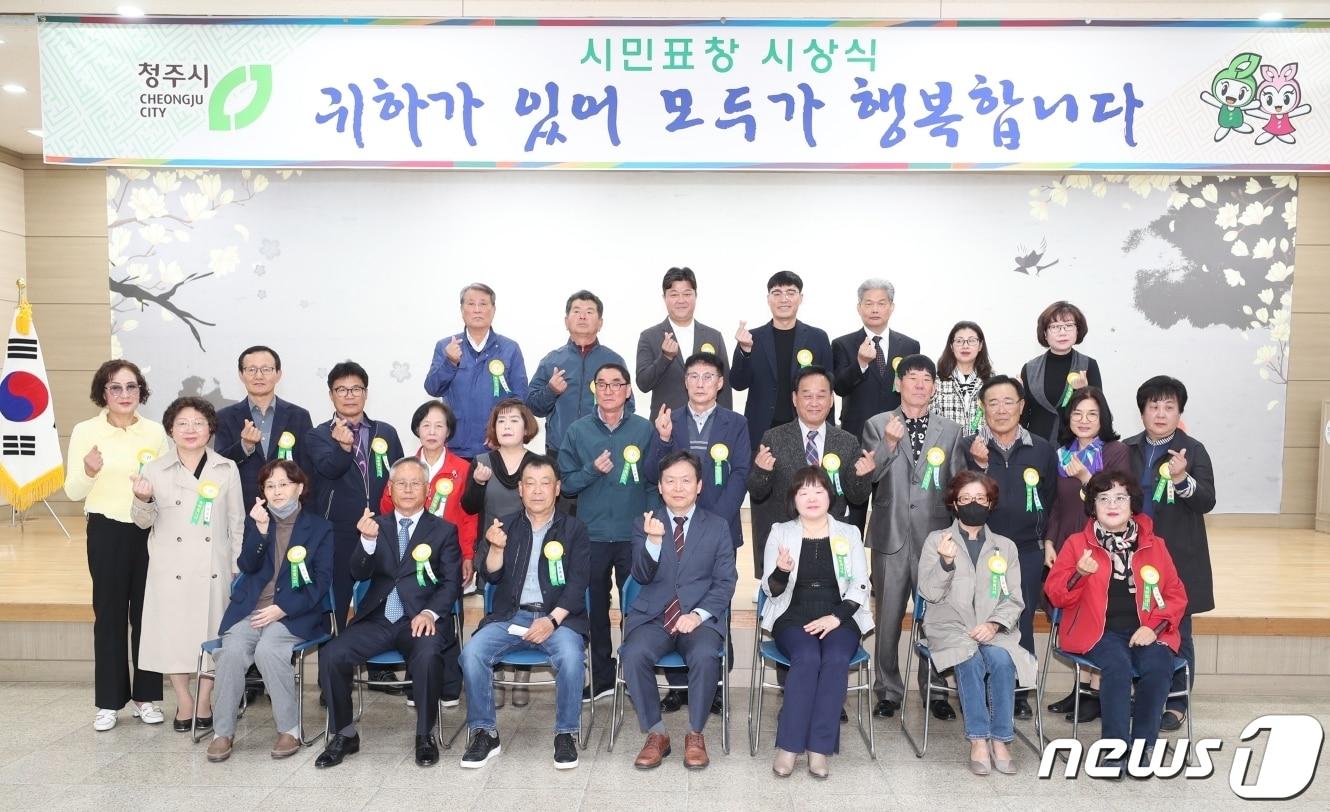 모범시민 12명 등…매달 유공자 표창충북 청주시는 10일 서원구청 대회의실에서 4월 시민표창 시상식을 열고 있다.(청주시 제공).2023.4.10/뉴스1관련 키워드청주시시정발전시민표창관련 기사청주시, 모범시민 등 분야별 시민 유공자 37명 표창
