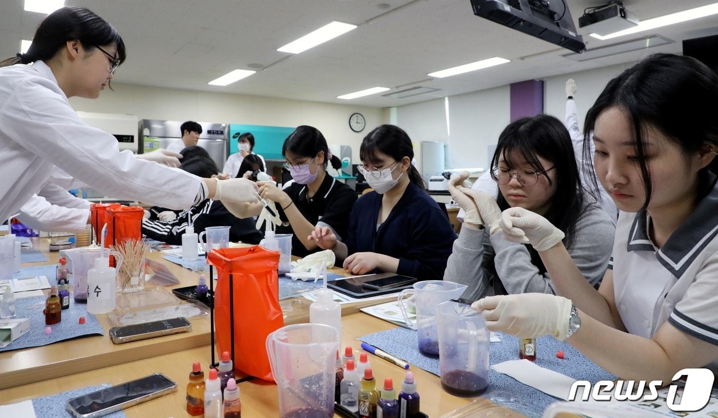 충북보건과학대학교 임상병리과가 31일 충북여자고등학교 동아리 재학생 30여명을 초대해 이색적 체험활동을 진행했다.(충북보건과학대 제공)/ 뉴스1관련 키워드충북보건과학대학교이성기 기자 진천군 "고춧대 등 영농부산물 태우지 말고 파쇄하세요"증평군, 여성농업인 바우처 신청 다음 달 20일까지 접수관련 기사충북의사회 "정부 발표 의사 수급 추계 과학적 근거 없어"충북보건과학대 작업치료학과, 국가고시 2년 연속 100% 합격청주대 '학생이 가고 싶은, 학부모가 보내고 싶은 대학'"야식 먹고 파이팅"…충북보건과학대 '기말고사 간식 이벤트'[오늘의 주요일정] 충북·세종(19일, 수)