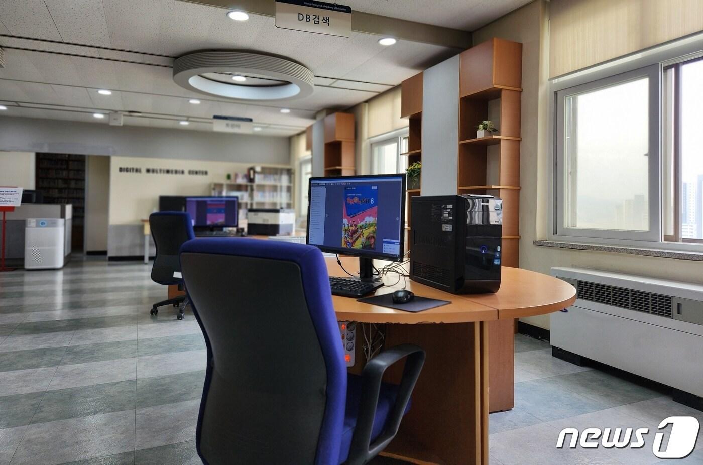 충북교육청 교육도서관이 1일부터 시작한 교과서 원문 열람·출력 서비스를 이용할 수 있는 본관 5층 디지털자료실 DB 검색 전용 컴퓨터.(충북교육청 제공)/ 뉴스1.