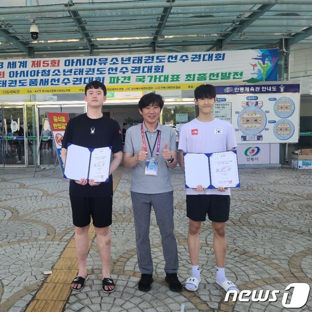 겨루기 부문 헤비급 장원경, 페더급 이재욱 선발전서 우승청주공업고등학교가 '12회 아시아청소년태권도선수권 대회 파견 국가대표 최종선발전'에서 겨루기 부문 청소년 국가대표 2명을 배출했다. 왼쪽부터 헤비급 장원경 학생, 신보현 태권도부 코치, 페더급 이재욱 학생.(충북교육청 제공)/ 뉴스1관련 키워드충저공고태권도이성기 기자 괴산군청소년수련원, 청소년방과후아카데미 신입생 상시 모집증평 청소년 교류단, 중국 치타이허시서 4박5일 방문