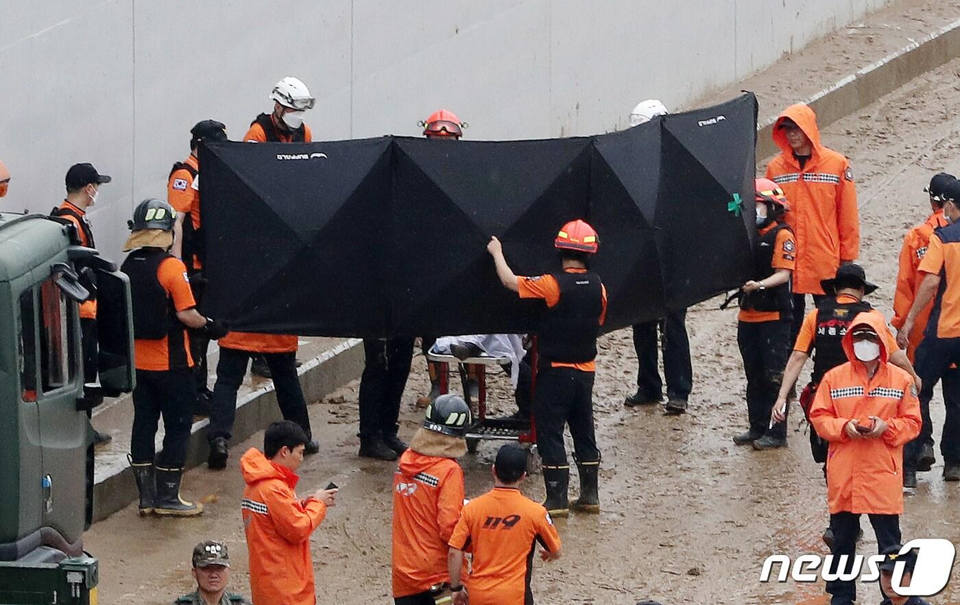 16일 미호천 제방 유실로 침수된 충북 청주시 오송읍 궁평2지하차도에서 소방대원들이 실종자를 수습하고 있다. 2023.7.16/뉴스1 ⓒ News1 박세연 기자관련 키워드오송지하차도침수궁평지하차도관련 기사'오송참사 제방 부실 관리' 행복청·금강청 공무원들 혐의 부인서승우 위원장 국민의힘 청주시장 대안 '부상'…전략적 선회 협의청주시 감사원에 한 재난대응 하소연…"인사가점 생색내기 불과"오송참사 유족, 국가·지자체 상대 174억 손배소 제기오송참사 국정조사 보고서 여당 주도로 채택