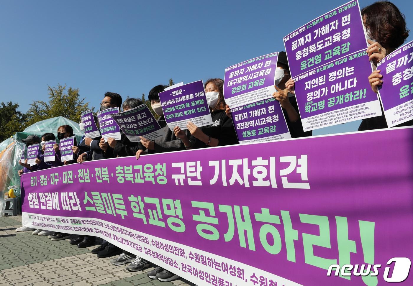 스쿨미투 학교명 공개 촉구 기자회견 자료사진. /뉴스1 ⓒ News1 박지혜 기자