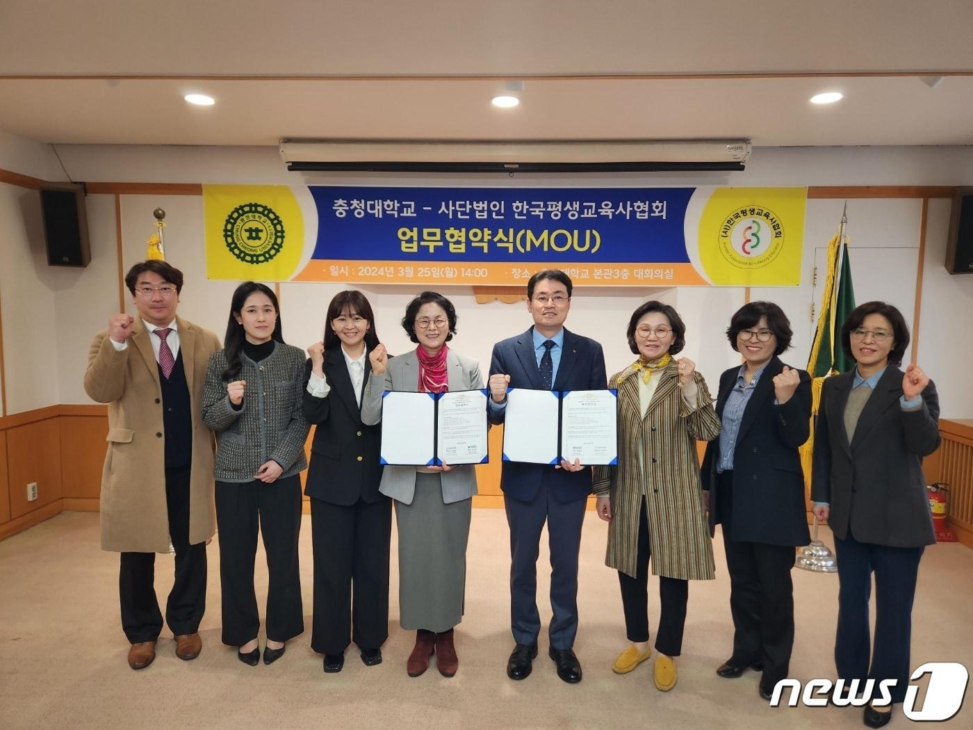 충청대학교는 사단법인 한국평생교육사협회(회장 이재주)와 평생직업교육 활성화 등을 위해 협약했다.(충청대학교 제공)/뉴스1관련 키워드충청대학교이성기 기자 진천군, 설맞이 고향 쌀 팔아주기 운동진천군수 출마 예정 김명식 전 진천군체육회장 18일 토크콘서트관련 기사세종호수공원·중앙공원 일원 '1호 국가도시공원' 지정 추진[인사] 충남도한국교통대 취업률 66.5%…교육부 조사서 충청권 국립대 1위[단독] 대덕대 교직원 130명 급여 6억 체불 해결…이사회 의결대통령 세종집무실 29년 입주·의사당 33년 준공…행복청 '속도전'