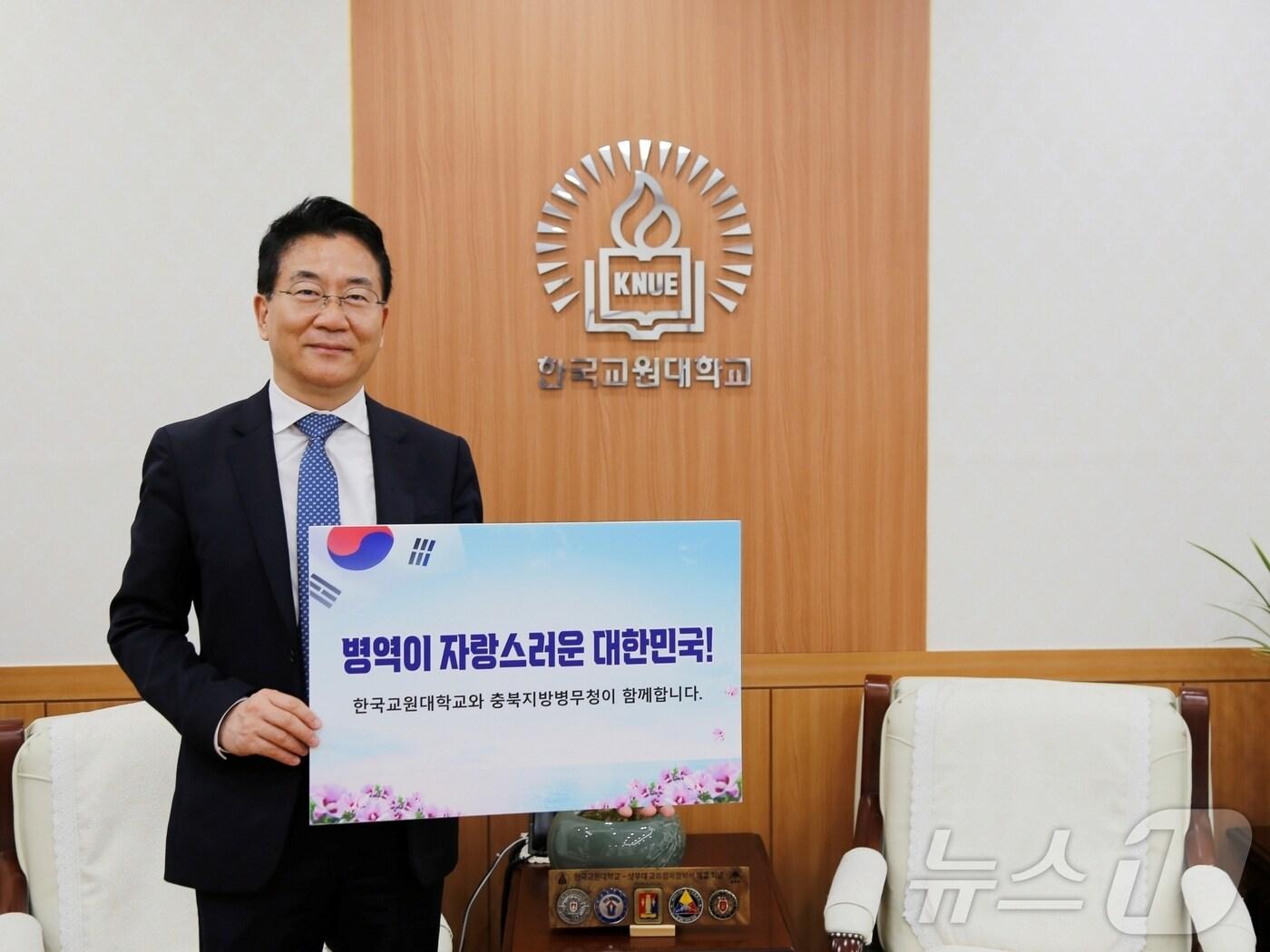 차우규 한국교원대학교 총장이 10일 병역 이행 감사 챌린지에 열 번째 주자로 참여했다.(한국교원대 제공)/뉴스1관련 키워드한국교원대차우규총장이성기 기자 진천군, 기술보급 블렌딩 협력 모델 국비 공모사업 선정괴산군, 불정면 지장리 일원에 OTT 콘텐츠 제작 기반시설 조성