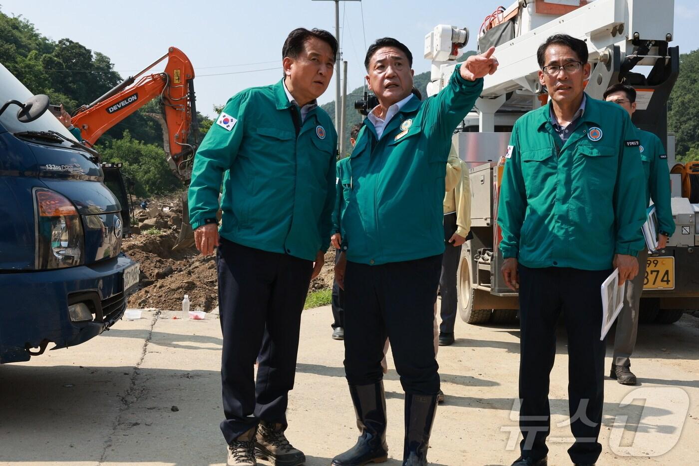 농경지 등 피해 눈덩이…수해현장 찾은 김영환 충북지사에 건의김영환 충북지사(왼쪽)가 영동군 수해현장을 찾아 정영철 영동군수(가운데)로 부터 피해 현황을 듣고 있다. (영동군 제공) /뉴스1관련 키워드영동군특별재난지역장인수 기자 옥천 행복나눔푸드뱅크마켓 취약계층 후원액 5억원 달성영동군보건소 택시 승차대 9곳 금연구역 지정관련 기사[오늘의 주요일정] 충북·세종(8일, 목)[오늘의 주요일정] 충북·세종(30일, 화)[오늘의 주요일정] 세종·충북(15일, 월)[오늘의 주요일정] 충북·세종(5일, 금)[오늘의 주요일정] 충북·세종(17일, 월)