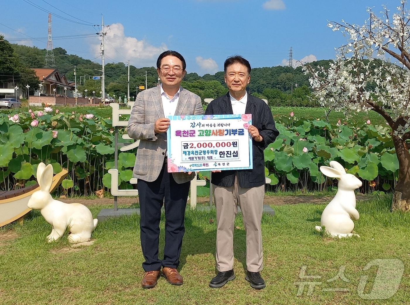 출향인, 명예군민 등 참여 이어져한진섭 재경옥천군향우회장(오른쪽) 고향사랑기부금 기탁 모습옥천군 제공) /뉴스1관련 키워드옥천군고향사랑기부제장인수 기자 옥천 행복나눔푸드뱅크마켓 취약계층 후원액 5억원 달성영동군보건소 택시 승차대 9곳 금연구역 지정관련 기사"함께한 고향사랑" 옥천군 3년간 기부금 8억3000만원 조성증평군·옥천군 이장연합회, 상대 지자체에 고향사랑기부 품앗이옥천군 고향사랑기부 답례품 48개 품목으로 확대옥천군 "고향사랑기부제 10만원 이상 기부 때 답례품 추가 제공"[오늘의 주요일정] 충북·세종(27일, 월)