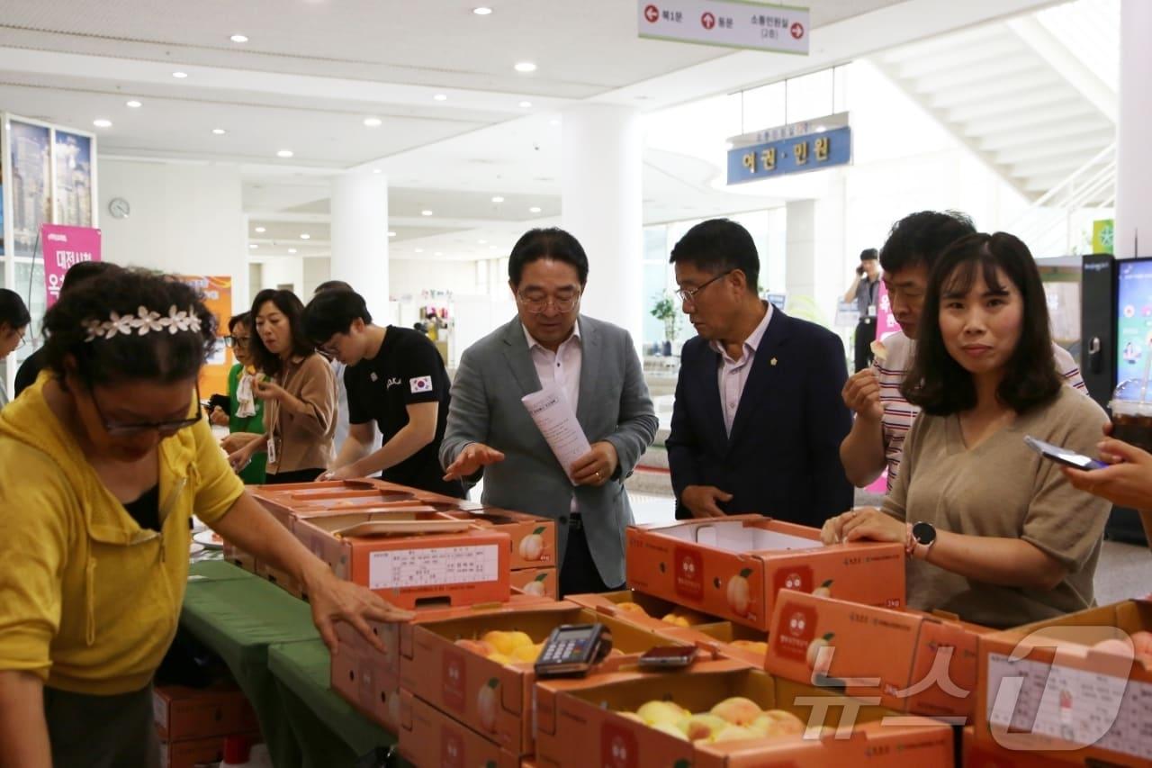 12~13일 대청시청서 판촉행사 800상자 완판대전시청에서 열린 옥천 복숭아 판촉행사(옥천군 제공) /뉴스1 관련 키워드옥천군향수복숭아장인수 기자 옥천 행복나눔푸드뱅크마켓 취약계층 후원액 5억원 달성영동군보건소 택시 승차대 9곳 금연구역 지정관련 기사'향수옥천 포도·복숭아 축제' 7월31일~8월2일 개최[오늘의 주요일정] 충북·세종(14일, 화)옥천 과일 서울 판촉행사 '대박'…1억8500만원 판매 실적(종합)충북 옥천 대표 과일 '포도·복숭아' 서울서 홍보 판촉행사'옥천 복숭아' 대전시민 입맛 공략…12~13일 판촉행사