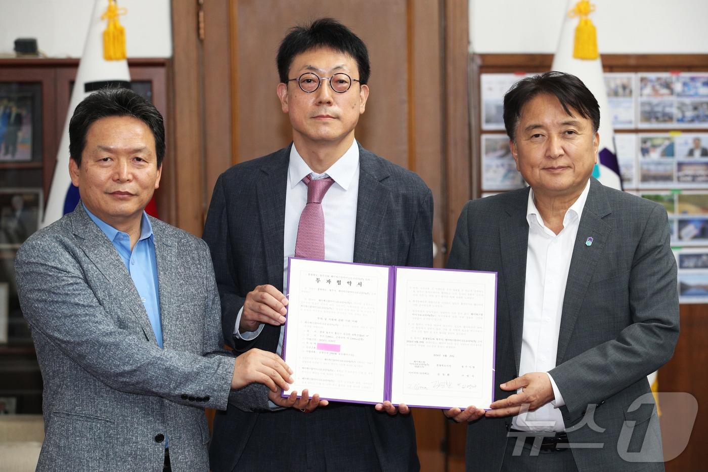 충북도와 청주시, JSR마이크로코리아는 29일 반도체 핵심소재 공장 신설 등 내용이 담긴 투자협약을 체결했다. (충북도 제공)