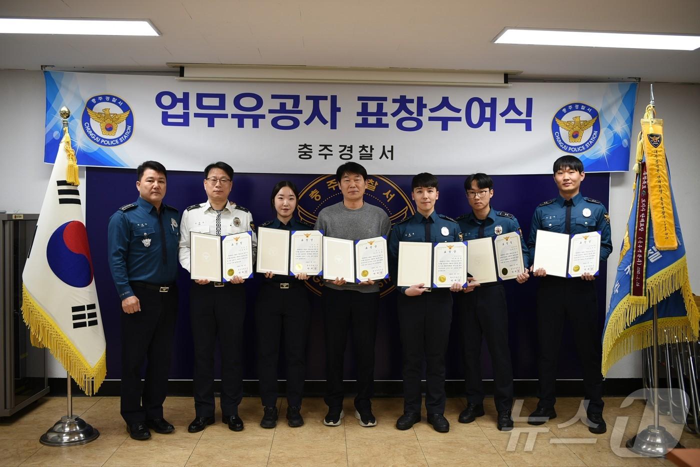 불법체류자 잡고, 투신 시도 요구조자 구조 지난달 설 연휴 특별 방범활동 기간에 범인을 검거하고 투신 시도 요구조자를 구조한 경찰들이 공로를 인정받았다. 사진은 표창수여식.(충주경찰서 제공)/뉴스1관련 키워드충주경찰서특별방범기간유공경찰불법체류자투신시도윤원진 기자 충주시 15년간 미국에 충주사과 수출…100% 계약 재배'민·관이 함께'…음성군, 의료·요양 통합지원 체계 가동