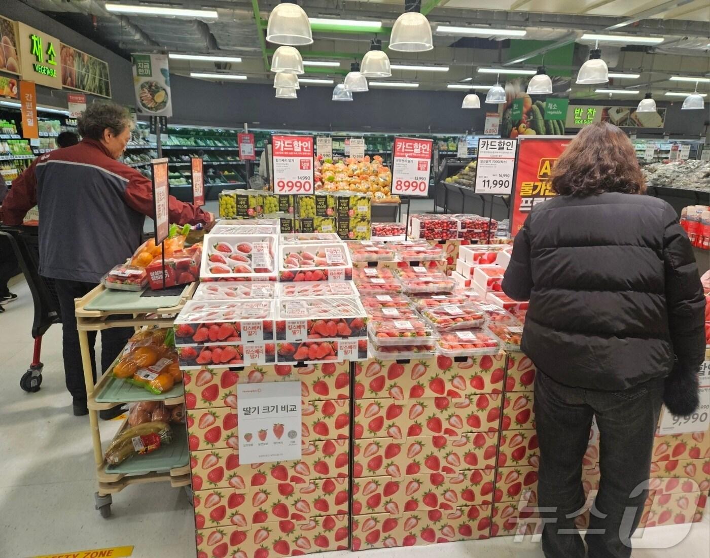 청주 전년비 맛김 25%, 된장·간장 18·39%, 배추·양배추 50%↑ 지난 17일 시민들이 청주의 한 대형마트에서 딸기를 살펴보고 있다.2025.2.17/뉴스1 ⓒ News1 이재규 기자 자료사진/뉴스1관련 키워드물가충북 청주소비자대형마트소매가이재규 기자 충북 조류인플루엔자 확산세…진천 농장서 고병원성 AI 추가 확진청주청원경찰서–금융기관 7곳 '보이스피싱 근절' 맞손관련 기사충북 대학들 줄줄이 등록금 인상…법정 최대치 5.49% 인상도이범석 청주시장, 설맞이 환급행사 앞두고 전통시장 장보기