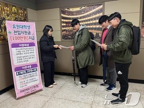 충북도립대·유원대 입학식 찾아 홍보 부스 설치 안내4일 영동군 공무원이 유원대학교 학생들을 상대로 인구 시책을 홍보하고 있다. (영동군 제공. 재판매 및 DB금지) /뉴스1 관련 키워드옥천군영동군장인수 기자 옥천군, 올해의 모범업소 40곳 지정…"안전한 먹거리 제공"황규철 옥천군수 '대한민국 청소년희망대상' 수상관련 기사[오늘의 주요일정] 충북·세종(19일, 금)[오늘의 주요일정] 충북·세종(18일, 목)충북 지방의회 해외연수 항공료 부풀리기 의혹…3곳 6명 송치[오늘의 주요일정] 충북·세종(17일, 수)충북개발공사 우슈팀 '2025 충북체육상 대상'