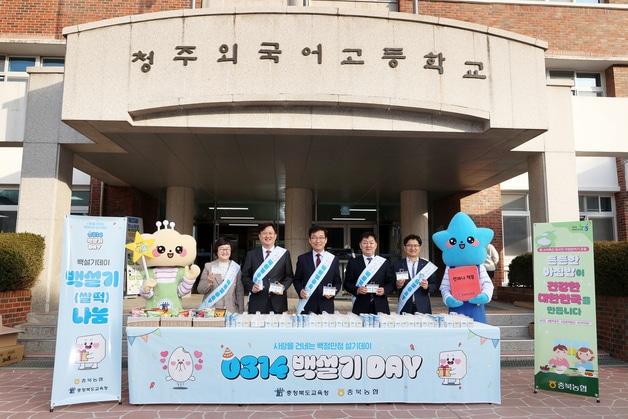 청주외고서 등굣길 학생들에게 백설기, 쌀과자, 쌀음료 나눔백설기데이 나눔행사.(충북도교육청 제공. 재판매 및 DB금지)뉴스1관련 키워드백설기데이우리쌀소비촉진충북교육청충북농협엄기찬 기자 충북 초교 입학생 1만명 첫 붕괴…학교 19곳 '신입생 0명'충북교육청 "초등학교 신입생 예비소집 완료…소재불명 없어"관련 기사강원도‧농협, 도청서 출근 직원 대상 백설기 나눔 행사[오늘의 날씨] 전북(14일, 금)…낮 최고 18~20도 '큰 일교차' 주의