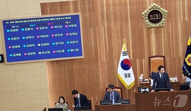 찬성 9명, 반대 9명, 기권 2명세종시의회 세종보 재가동 결의안 투표 결과. ⓒ News1 장동열 기자 세종 환경단체 세종보 재가동 반대 기자회견. ⓒ News1 장동열 기자 관련 키워드세종보재가동결의안부결장동열 기자 세종시 '사랑의 온도탑' 100도 달성…46일 만에 기록[오늘의 날씨] 충북·세종(16일, 금)…최고 13도 '포근' 미세먼지 '나쁨'관련 기사최민호 시장 "세종보 재가동 강력히 촉구" 환경단체 주장 반박