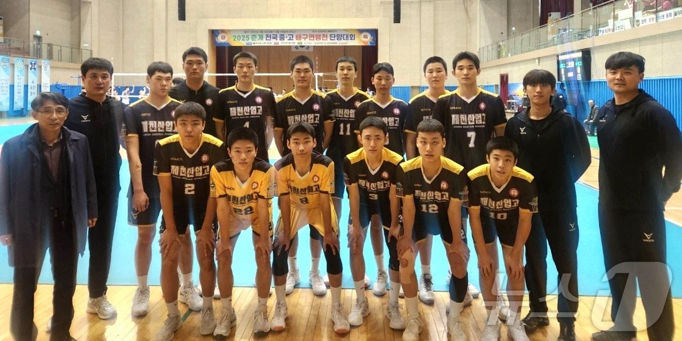 2017년 고교배구 평정…주축 졸업에 전력 약화불과 9명 출전한 제천여고 배구팀도 '값진 3위'제천산업고 배구팀 선수단.(제천산업고 제공. 재판매 및 DB금지) /뉴스1 제천산업고 라이트 공격수 방강호(3년)가 공격하고 있다.(제천산업고 제공. 재판매 및 DB금지) /뉴스1 제천여고 배구팀.(제천여고 제공. 재판매 및 DB금지) /뉴스1 손도언 기자 '범죄 예방 효과' 제천 도심 도로 경찰차량 전용 주차구획 설치[풍경] '산중의 겨울' 얼어붙은 단양 남한강…300년 된 겨울 고목