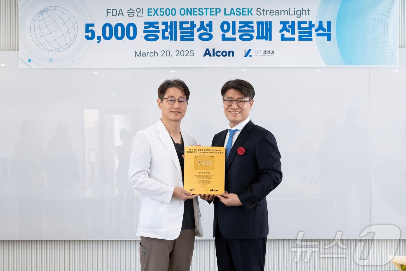 "EX500 White 활용해 최상의 의료서비스 제공할 것"글로벌 안과 의료기기 전문기업 알콘사, 김안과에 라섹 수술 5000례 인증패 전달(청주김안과 제공. 재판매 및 DB금) 관련 키워드충북 청주김안과알콘라섹EX500