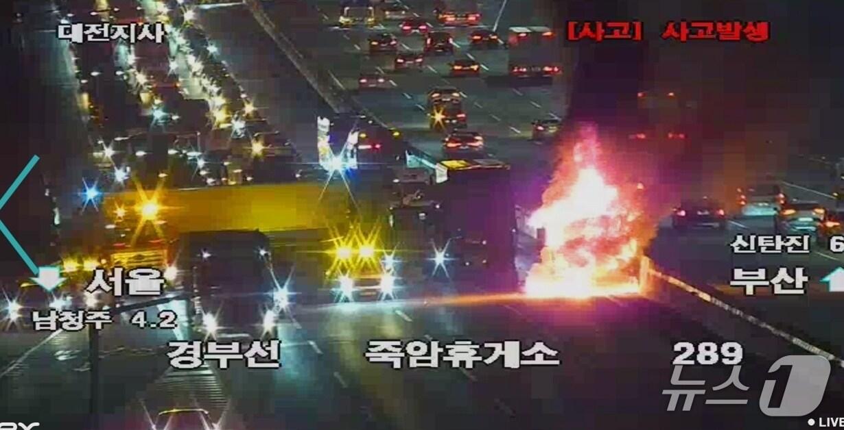 9일 오후 8시55분쯤 충북 청주시 서원구 현도면 경부고속도로 죽암휴게소 인근에서 화물차 추돌 사고가 발생했다.(독자 송영훈씨 제공. 재판매 및 DB 금지)/뉴스1관련 키워드청주경찰청주소방경부고속도로관련 기사청주 경부고속도로서 화물차끼리 추돌…1명 숨져청주 경부고속도로서 연이어 추돌 사고…3명 중상·1명 경상전국 산불 확산, 강풍으로 주불 진화 실패…야간 진화 돌입 (종합)176명 비상탈출 여객기 화재에 가족 살인·눈길 32중 추돌사고까지 (종합)귀성길 '눈폭탄'에 다중추돌 속출…60명 가까이 다치고 '정체'(종합2보)