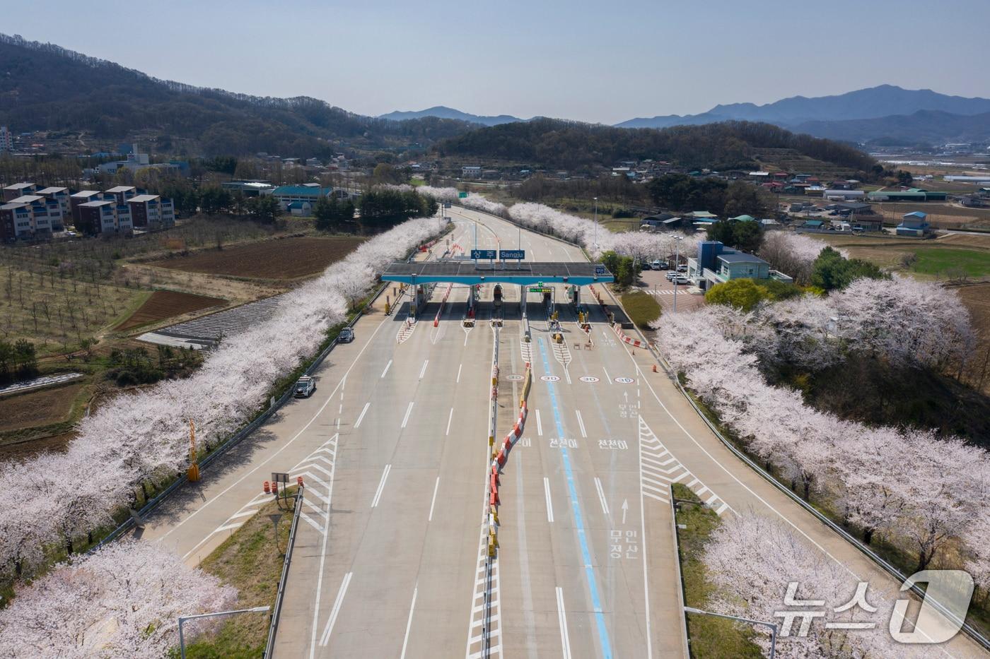 벚꽃 만개한 경북 상주 톨게이트.(한국도로공사 충북본부 제공. 재판매 및 DB 금지)/뉴스1