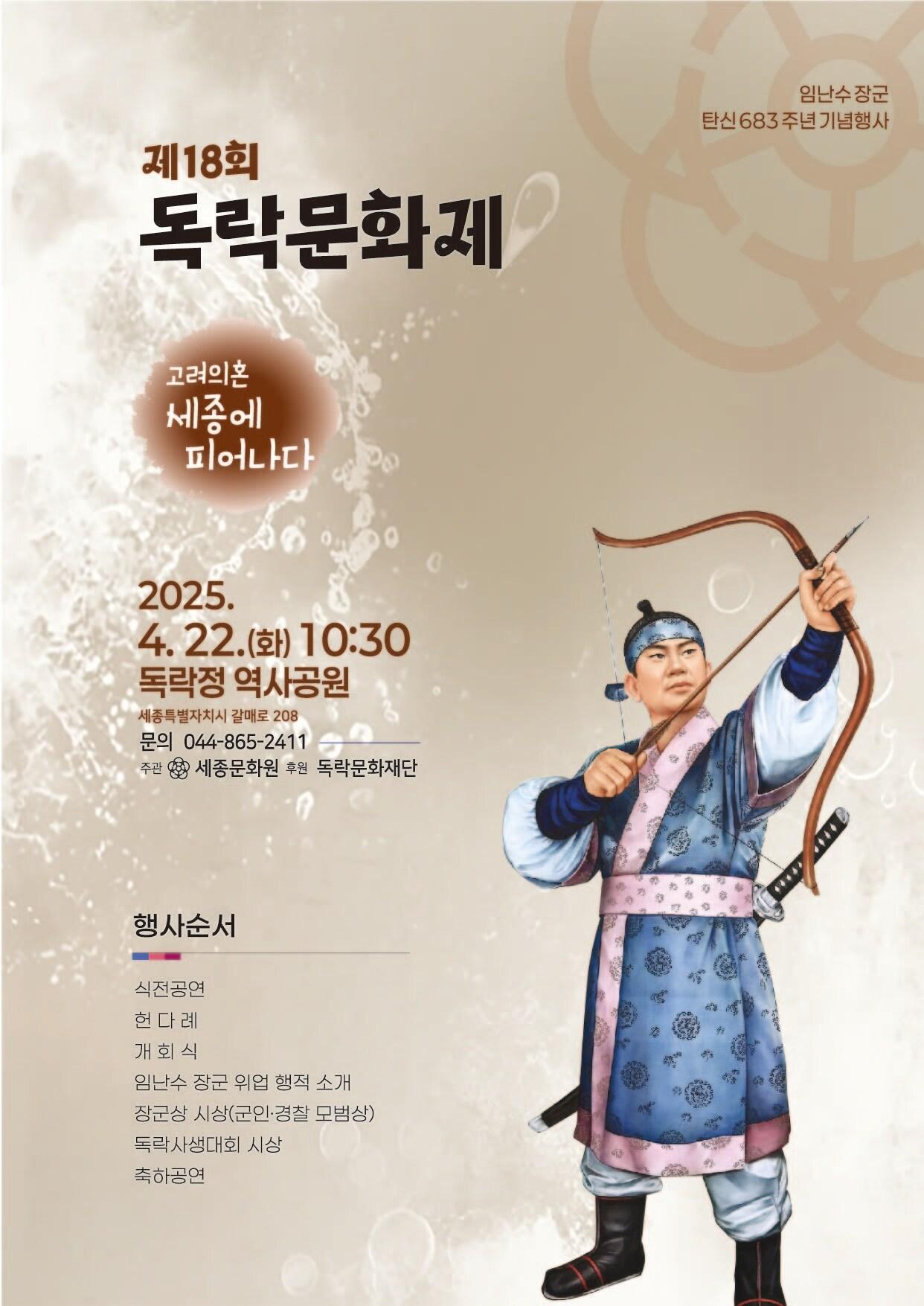22일 독락정서…'고려의 혼 세종에 피어나다' 주제18회 독락문화제 포스터. (세종문화원 제공. 재판매 및 DB금지)관련 키워드독락문화제임난수장군장동열 기자 세종시민 85% "지역 치안 안전하다"…가장 위협은 오토바이세종교육청, 올해 초등 1~3학년 학급당 학생수 20명으로 줄여