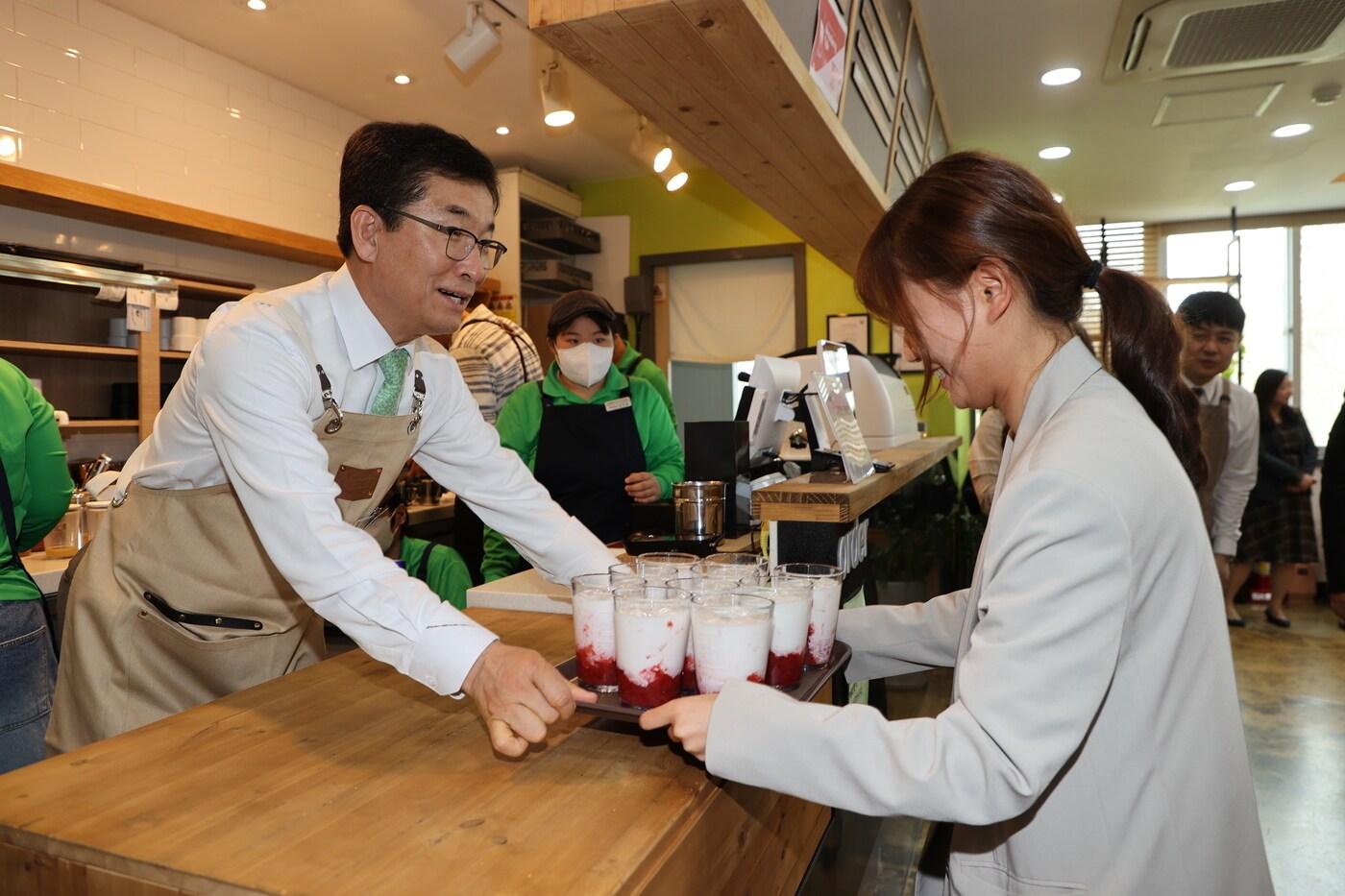 카페 '어울림방' 일일점장으로 변신한 윤건영 충북교육감.(충북교육청 제공. 재판매 및 DB금지)/뉴스1카페 '어울림방' 일일점장으로 변신한 윤건영 충북교육감.(충북교육청 제공. 재판매 및 DB금지)/뉴스1관련 키워드윤건영충북교육감어울림방장애인의날엄기찬 기자 충북진로교육원, 내달 27일까지 '방학애(愛) 진로상담해' 운영'적응 A to Z'…충북교육청, 전입 직원 안내자료 책자 제작관련 기사특수교육 학생들 미래 준비 돕는다…충북특수교육원 교육관 개관[오늘의 주요일정] 충북·세종(29일, 금)[오늘의 주요일정] 충북·세종(27일, 금)