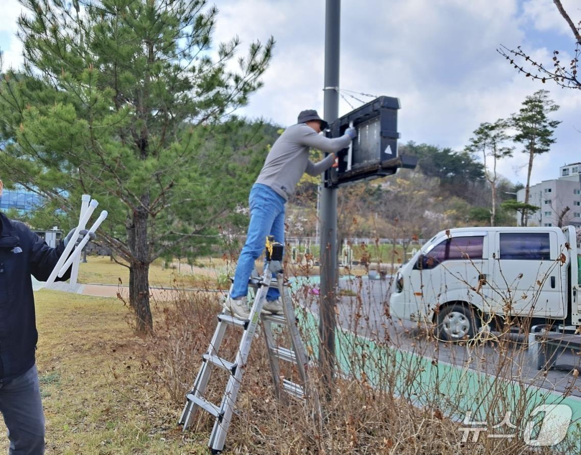가로등 운영 시간에 맞춰 자동 작동…해충 유인·퇴치 포충기 설치모습.(단양군 제공)/뉴스1 관련 키워드단양군단양보건의료원해충포충기손도언 기자 제천의병? 의림지?…제천시민축구단 엠블럼 선택 공개투표단양군, 영농부산물 파쇄 지원…23일까지 접수