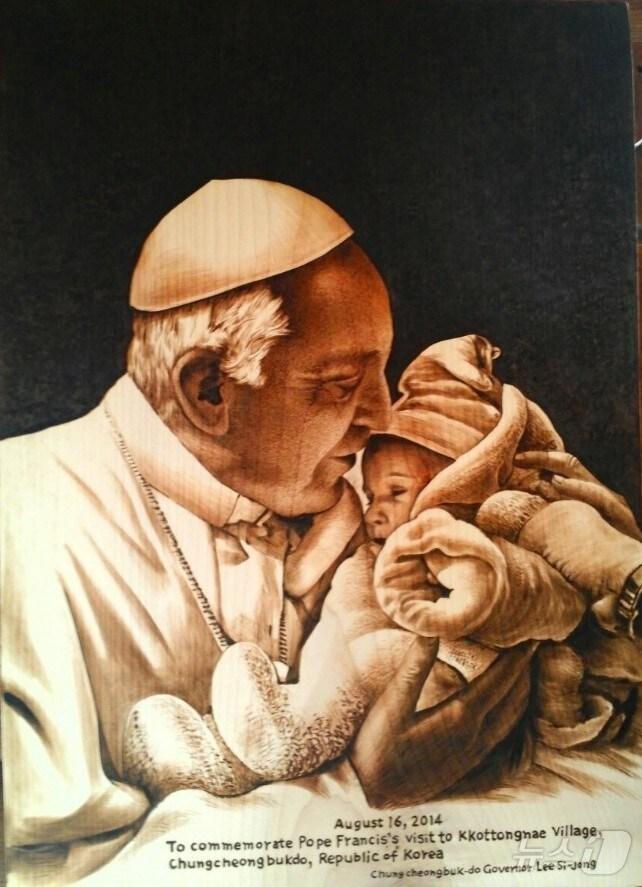 "눈빛엔 사랑과 인자함…미소에는 온화함 가득"프란치스코 교황 방한 당시 충북도가 선물한 낙화(烙畵) 초상화(충북도 제공)프란치스코 교황이 21일(현지시간) 선종했다. 향년 88세. 사진은 교황(가운데)이 2016년 9월 30일 조지아 트빌리시의 성 시몬 바르 사바에의 가톨릭 칼데아 교회에서 아시리아 칼데아 공동체와 만난 자리에서 평화의 상징으로 비둘기를 날려보내는 모습. ⓒ AFP=뉴스1 ⓒ News1 최종일 선임기자국가무형문화재 김영조 낙화장./뉴스1관련 키워드프란치스코교황선종방한꽃동네초상화낙화김용빈 기자 김영환 충북지사, 괴산 AI 방역 현장 긴급 점검충북도청사 외벽이 캔버스로…아나몰픽 미디어아트 전시 개막관련 기사[기자의 눈] '중요한 건 실천' 몸소 보여주고 떠난 프란치스코 교황"희생적 삶 기억할 것" 전국서 프란치스코 교황 애도 물결(종합)"차기 교황도 소외된 이들 위하는 분이길"…영화 '콘클라베' 보러온 시민들'선종' 프란치스코, 각별했던 한국 사랑…韓종교계 "위대한 영적 지도자"(종합)[뉴스1 PICK]한국과 각별했던 프란치스코 교황