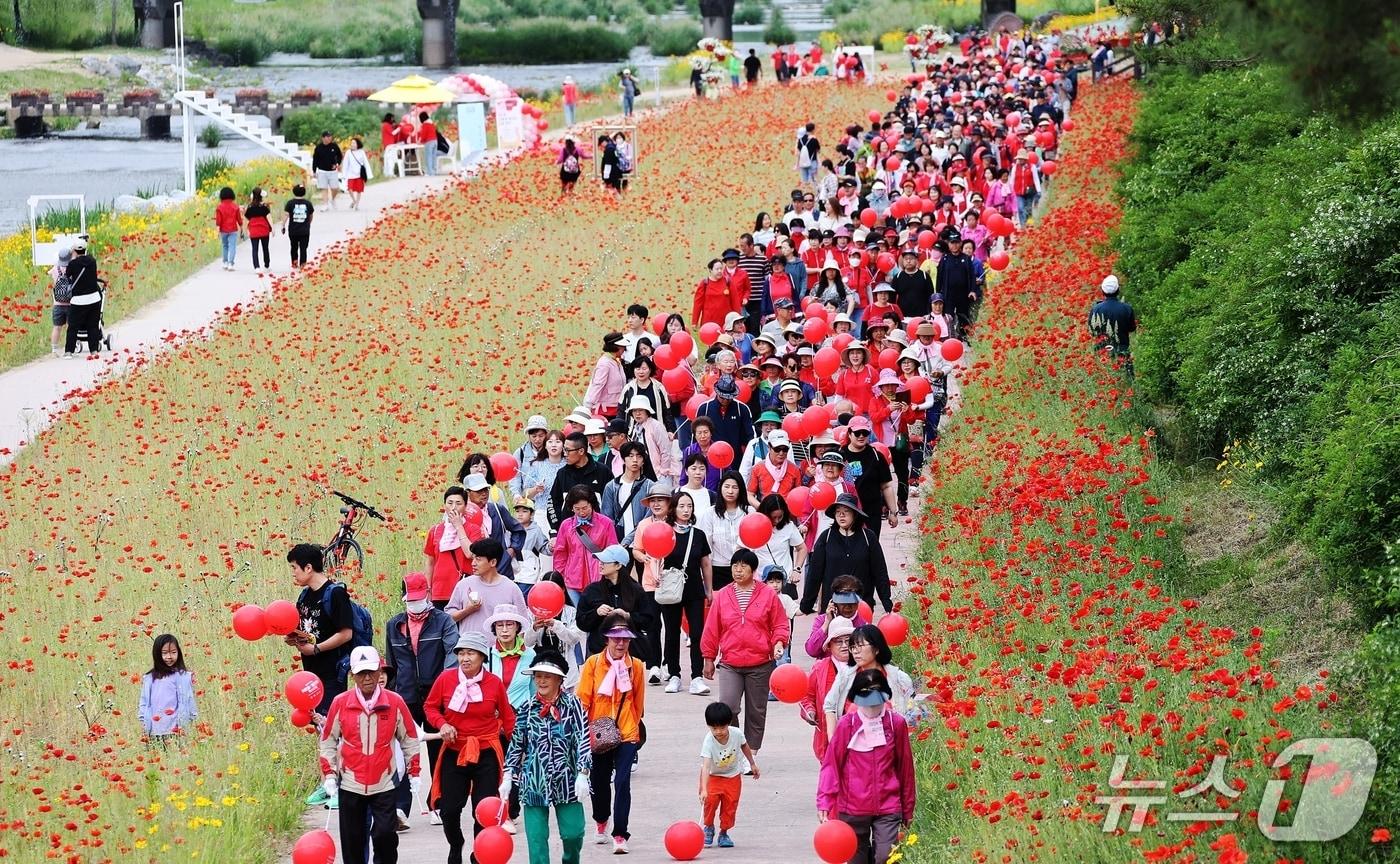 대규모 드론쇼부터 레드댄스 경연·치맥페스티벌까지충북 괴산군은 5월 23일부터 25일까지 3일간 괴산유기농엑스포광장과 동진천변 일대에서 '2025 괴산빨간맛페스티벌'을 개최한다. 사진은 지난해 축제 때 열린 걷기대회 모습.(괴산군 제공)/뉴스1관련 키워드괴산군빨간맛페스티벌이성기 기자 진천군수 출마 예정 김명식 전 진천군체육회장 18일 토크콘서트김문종 전 청와대 행정관, 증평군수 출마 선언관련 기사괴산군, 2025년 상반기 생활인구 도내 군 단위 1위…148만명괴산군, 농어촌버스 무료화 등 2025년 10대 뉴스 선정 발표송인헌 괴산군수 '한국의 최고 경영 대상' 리더십 부문 대상 수상괴산군, 작년 생활인구 충북 군 단위 중 1위…352만명괴산 '자연울림 음악분수' 무더위 속 시원한 분수쇼에 인기몰이