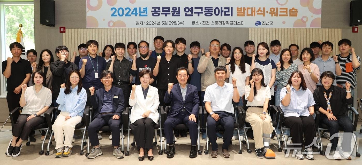 창의, 현안 투트랙(Two-Track) 특화 연구 진행충북 진천군은 공직자들이 스스로 공부해 군정에 적용하는 문화를 만들기 위해 올해도 공무원 연구동아리를 운영한다. 사진은 지난해 연구동아리 발대식 모습.(진천군 제공)/뉴스1관련 키워드진천군공무원연구동아리이성기 기자 진천군, 설맞이 고향 쌀 팔아주기 운동진천군수 출마 예정 김명식 전 진천군체육회장 18일 토크콘서트