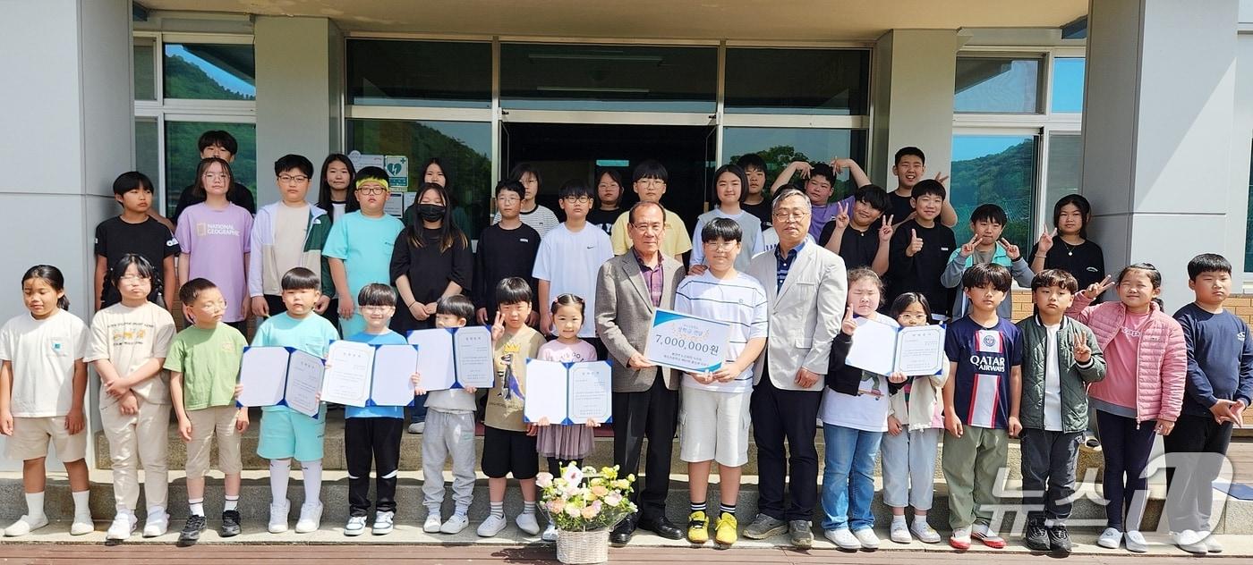 충북 괴산군 불정면 목도초등학교는 8일 유치원생 4명을 포함한 전교생 41명에게 1인당 15만 원씩 615만 원의 장학금을 지급했다.(괴산증평교육지원청 제공)/뉴스1